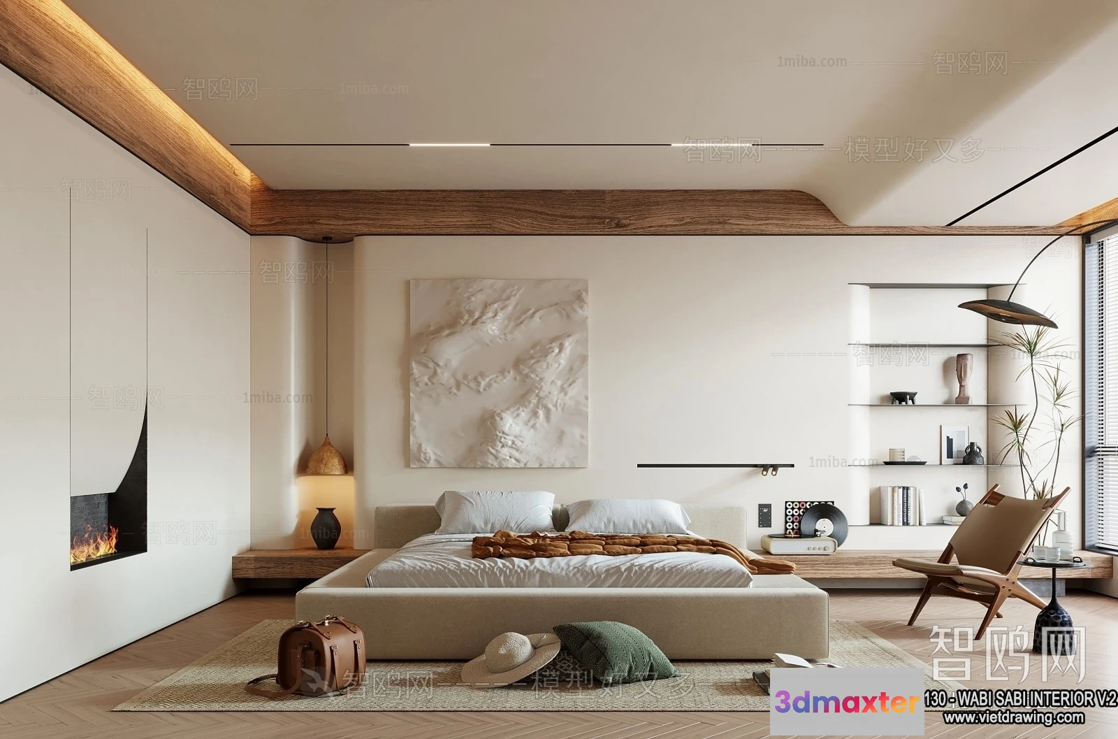 3D Models / 3D Scenes / Interior / Bedroom / Bedroom 3D Interior Scene Model – Wabi Sabi Style – 055 3D Max