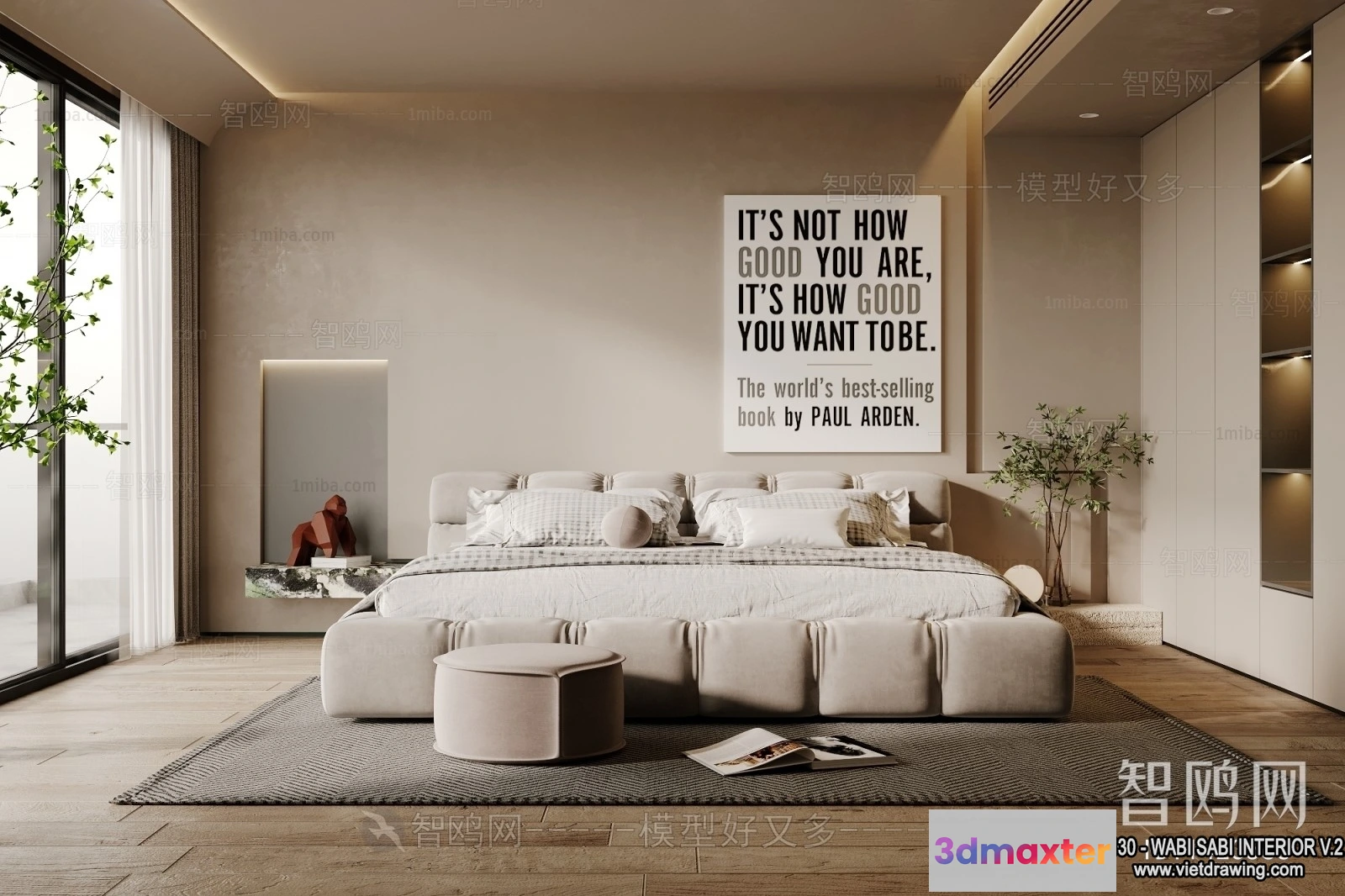 3D Models / 3D Scenes / Interior / Bedroom / Bedroom 3D Interior Scene Model – Wabi Sabi Style – 057 3D Max
