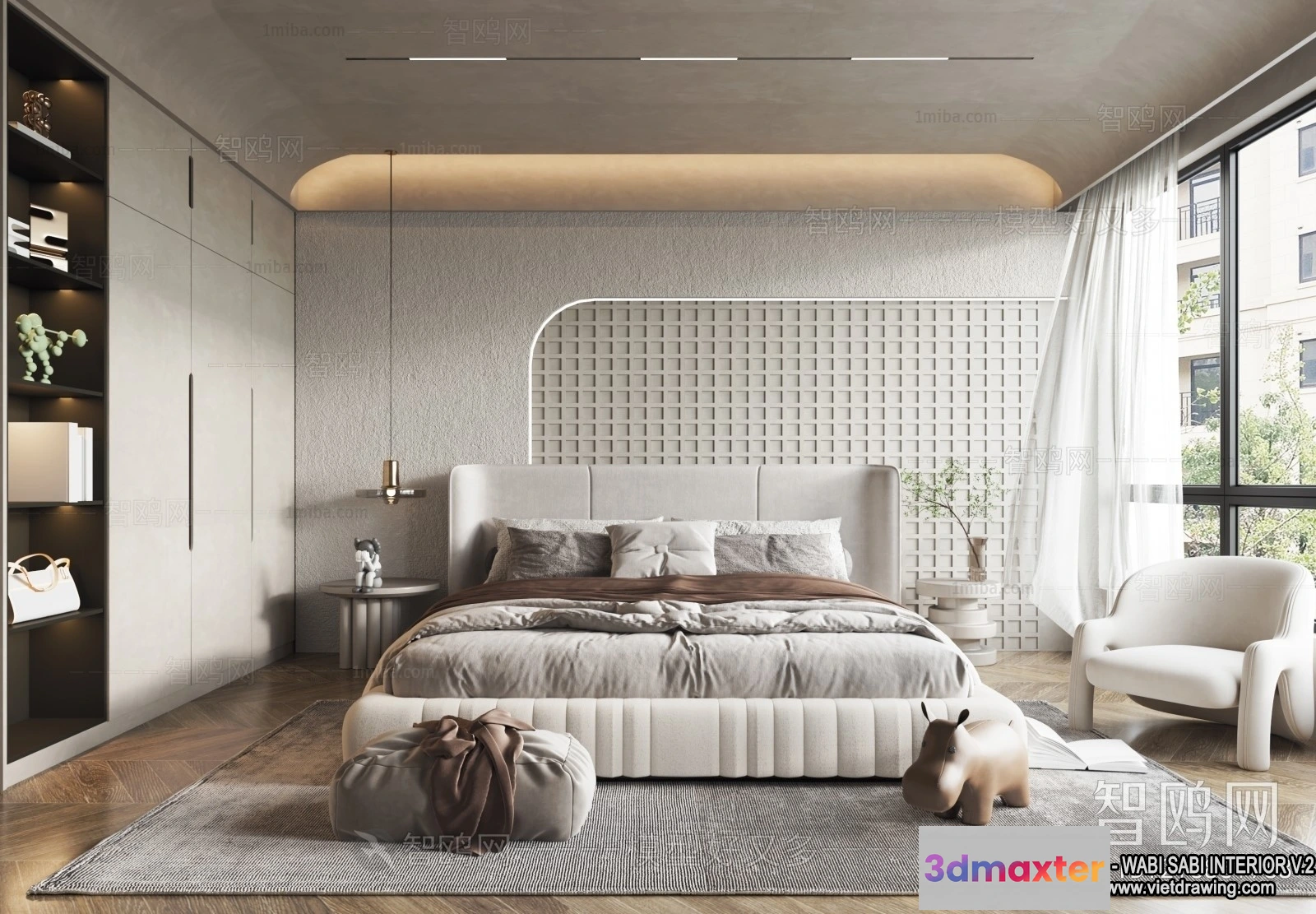 3D Models / 3D Scenes / Interior / Bedroom / Bedroom 3D Interior Scene Model – Wabi Sabi Style – 065 3D Max