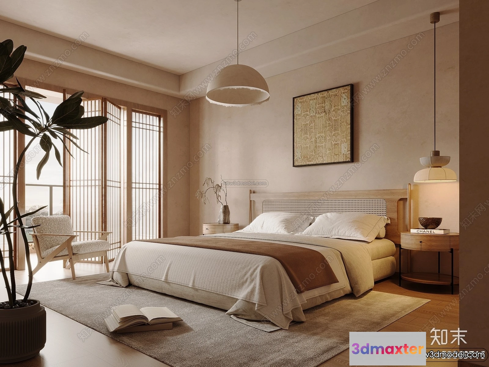 3D Models / 3D Scenes / Interior / Bedroom / Bedroom 3D Interior Scene Model – Wabi Sabi Style – 070 3D Max
