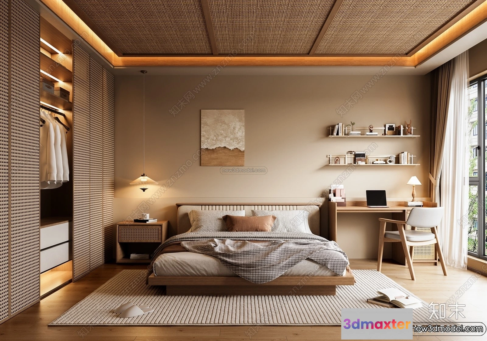 3D Models / 3D Scenes / Interior / Bedroom / Bedroom 3D Interior Scene Model – Wabi Sabi Style – 072 3D Max