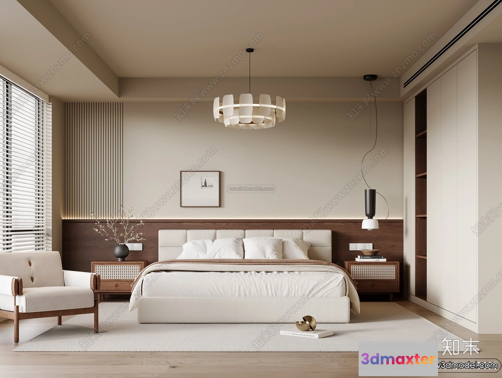 3D Models / 3D Scenes / Interior / Bedroom / Bedroom 3D Interior Scene Model – Wabi Sabi Style – 074 3D Max