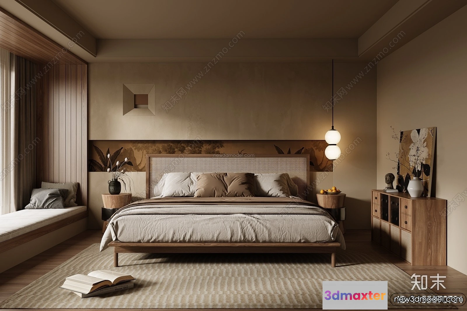 3D Models / 3D Scenes / Interior / Bedroom / Bedroom 3D Interior Scene Model – Wabi Sabi Style – 077 3D Max