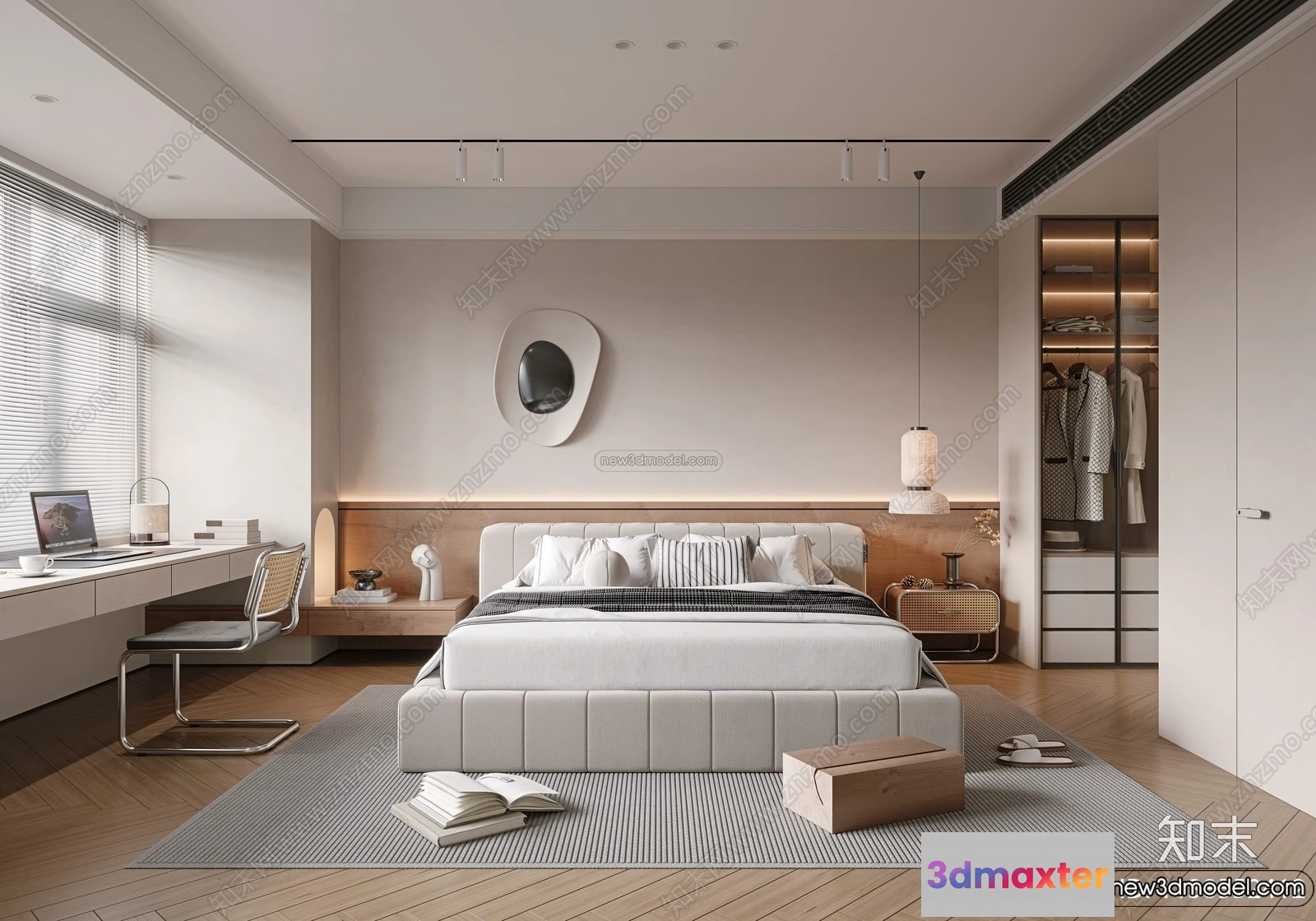 3D Models / 3D Scenes / Interior / Bedroom / Bedroom 3D Interior Scene Model – Wabi Sabi Style – 085 3D Max