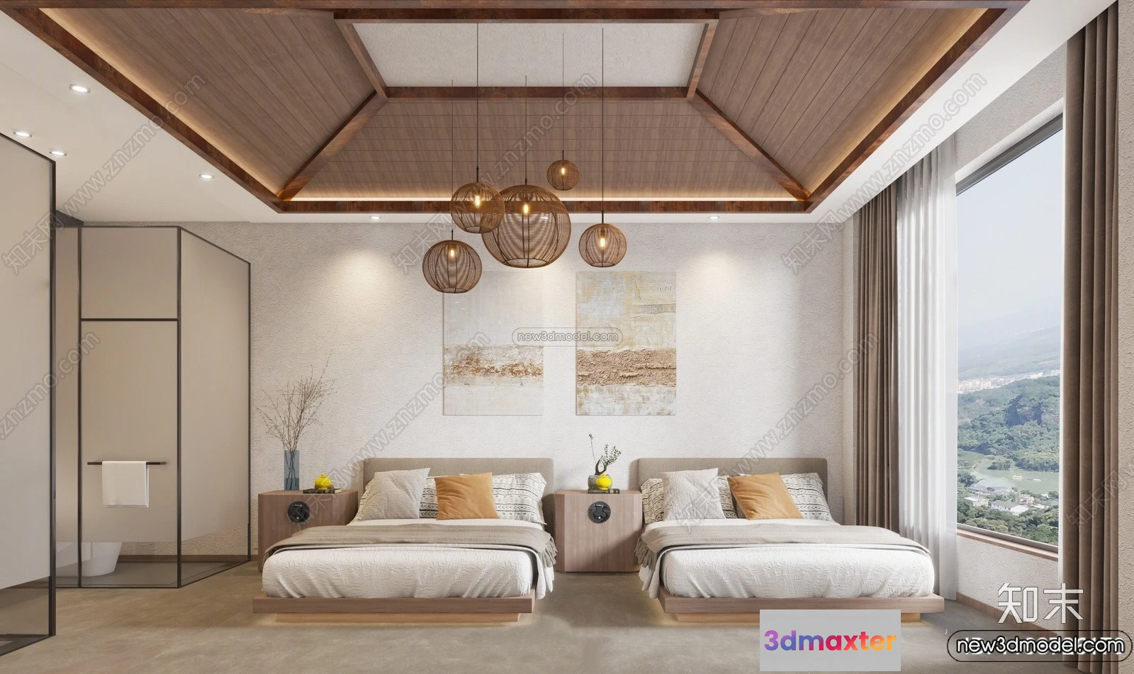 3D Models / 3D Scenes / Interior / Bedroom / Bedroom 3D Interior Scene Model – Wabi Sabi Style – 089 3D Max