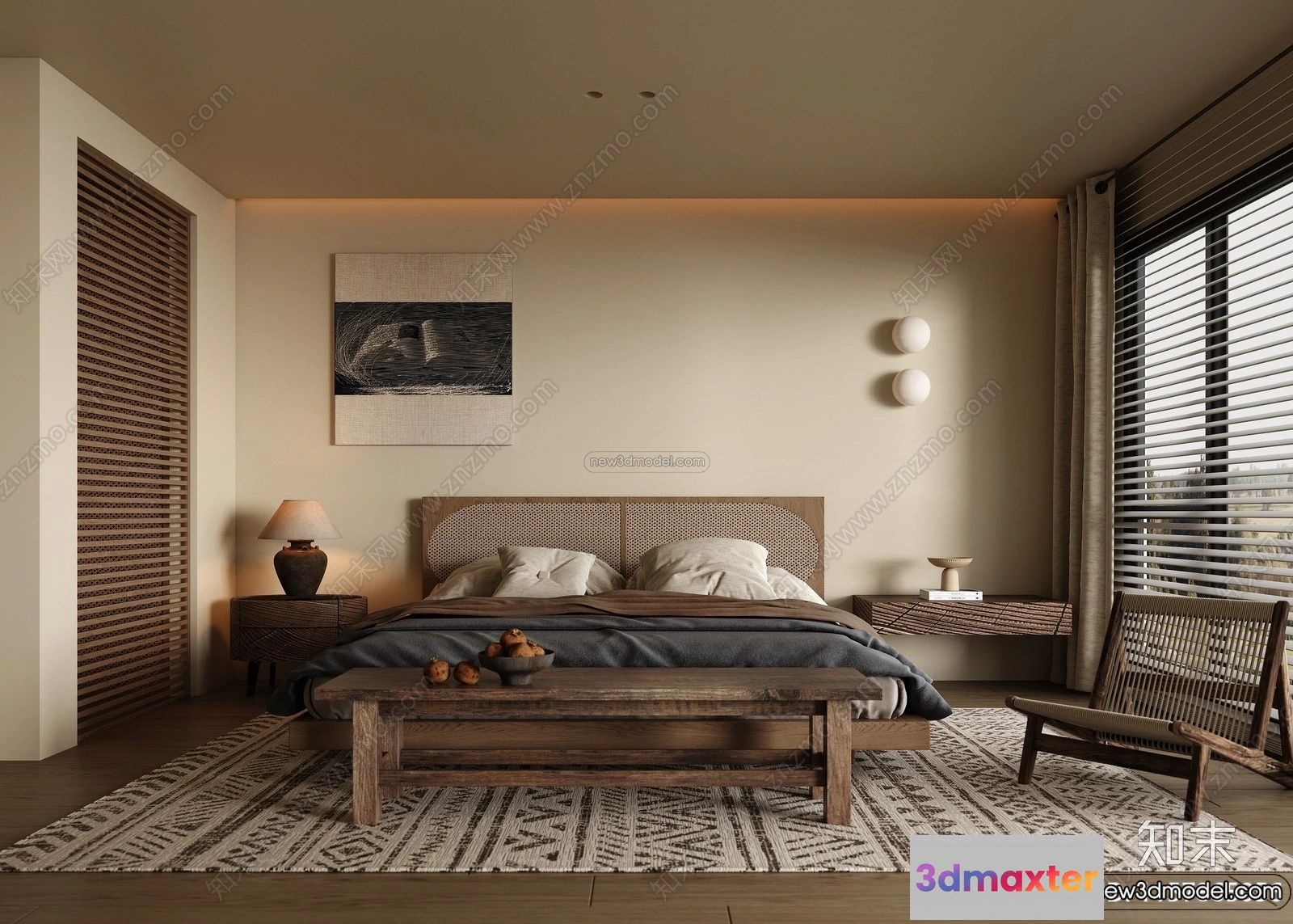 3D Models / 3D Scenes / Interior / Bedroom / Bedroom 3D Interior Scene Model – Wabi Sabi Style – 103 3D Max