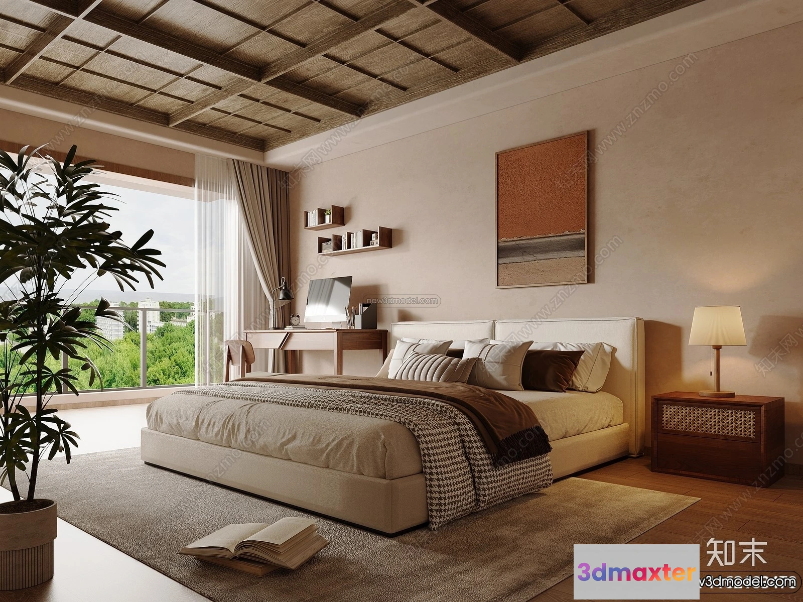 3D Models / 3D Scenes / Interior / Bedroom / Bedroom 3D Interior Scene Model – Wabi Sabi Style – 110 3D Max