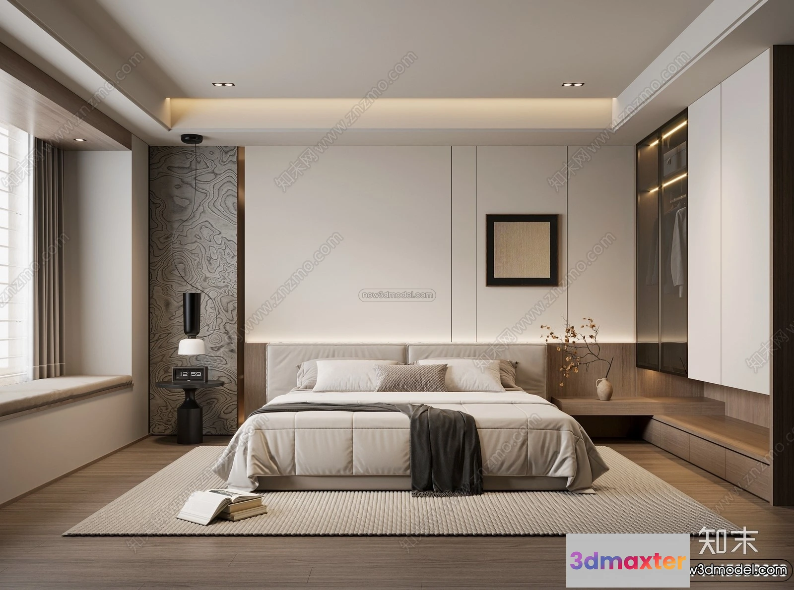 3D Models / 3D Scenes / Interior / Bedroom / Bedroom 3D Interior Scene Model – Wabi Sabi Style – 111 3D Max