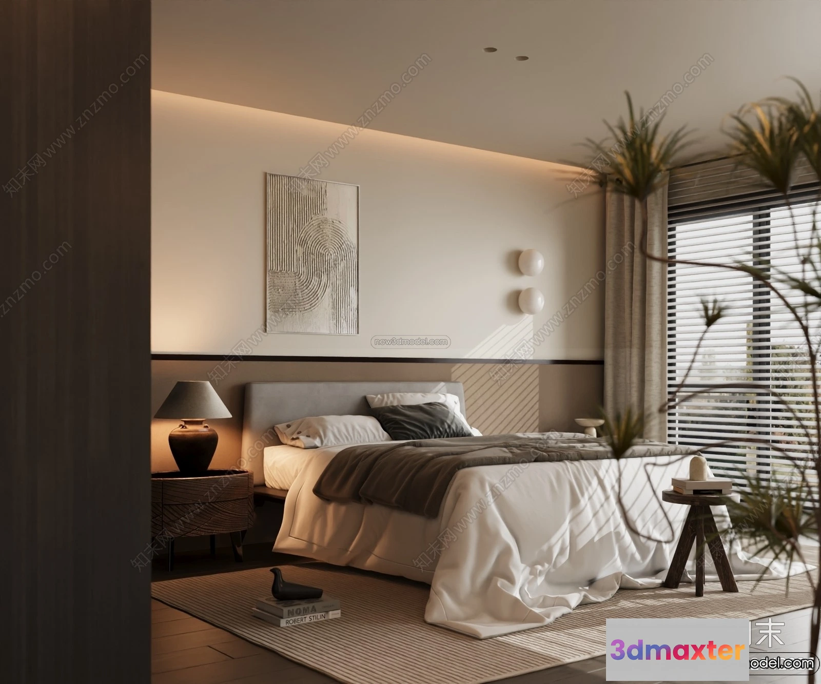 3D Models / 3D Scenes / Interior / Bedroom / Bedroom 3D Interior Scene Model – Wabi Sabi Style – 115 3D Max