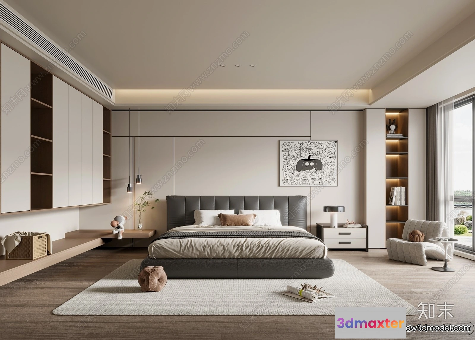 - Name: Bedroom – 3D Interior Scenes – Modern Style – 3D Models – 074