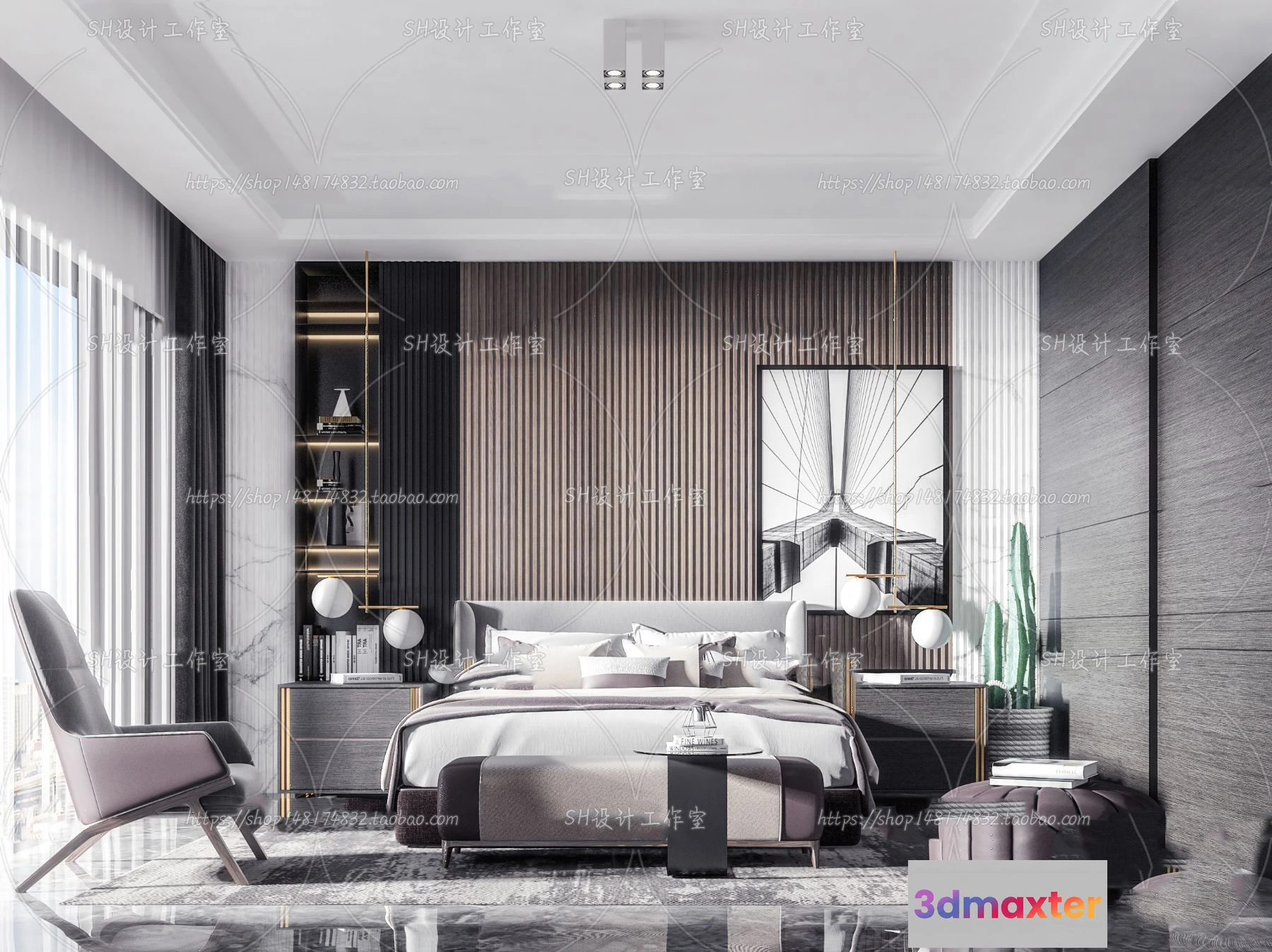 3D Models / 3D Scenes / Interior / Bedroom / BEDROOM 3D SCENES – VRAY RENDER – 124