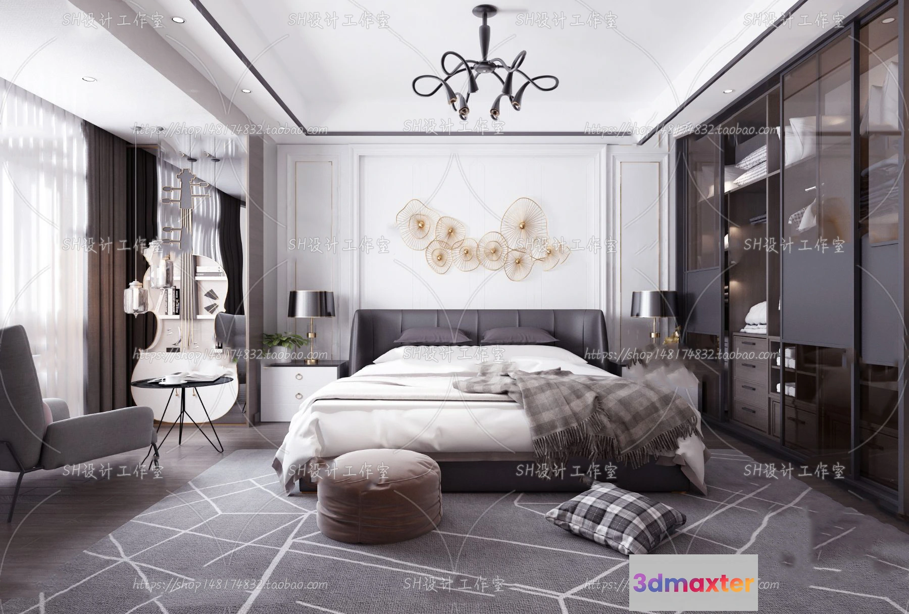 3D Models / 3D Scenes / Interior / Bedroom / BEDROOM 3D SCENES – VRAY RENDER – 127