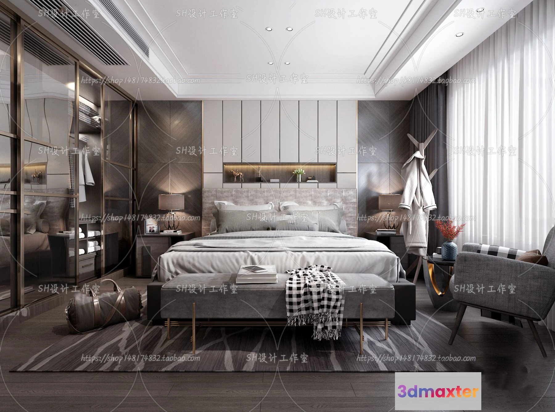 3D Models / 3D Scenes / Interior / Bedroom / BEDROOM 3D SCENES – VRAY RENDER – 135