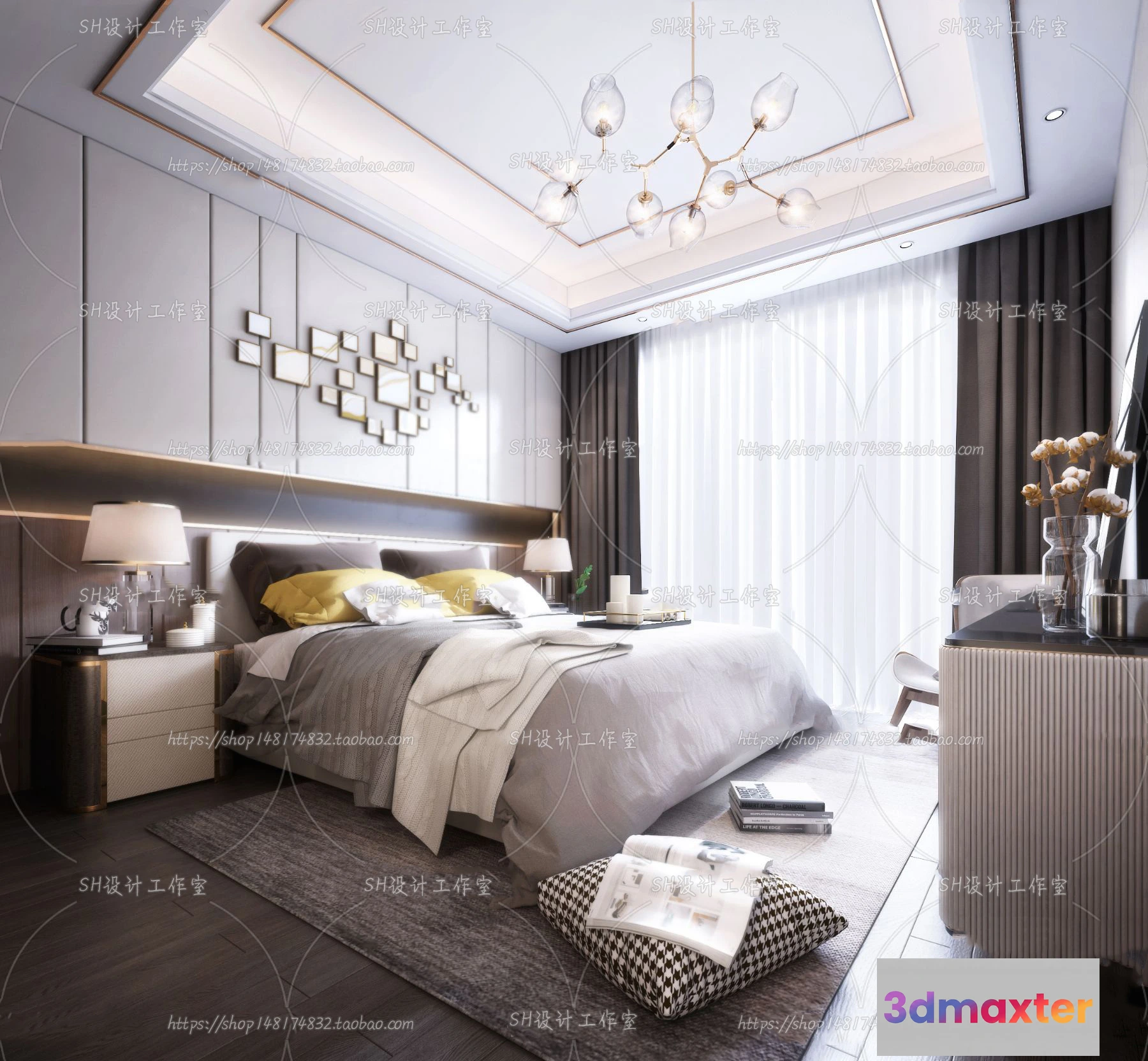 3D Models / 3D Scenes / Interior / Bedroom / BEDROOM 3D SCENES – VRAY RENDER – 197