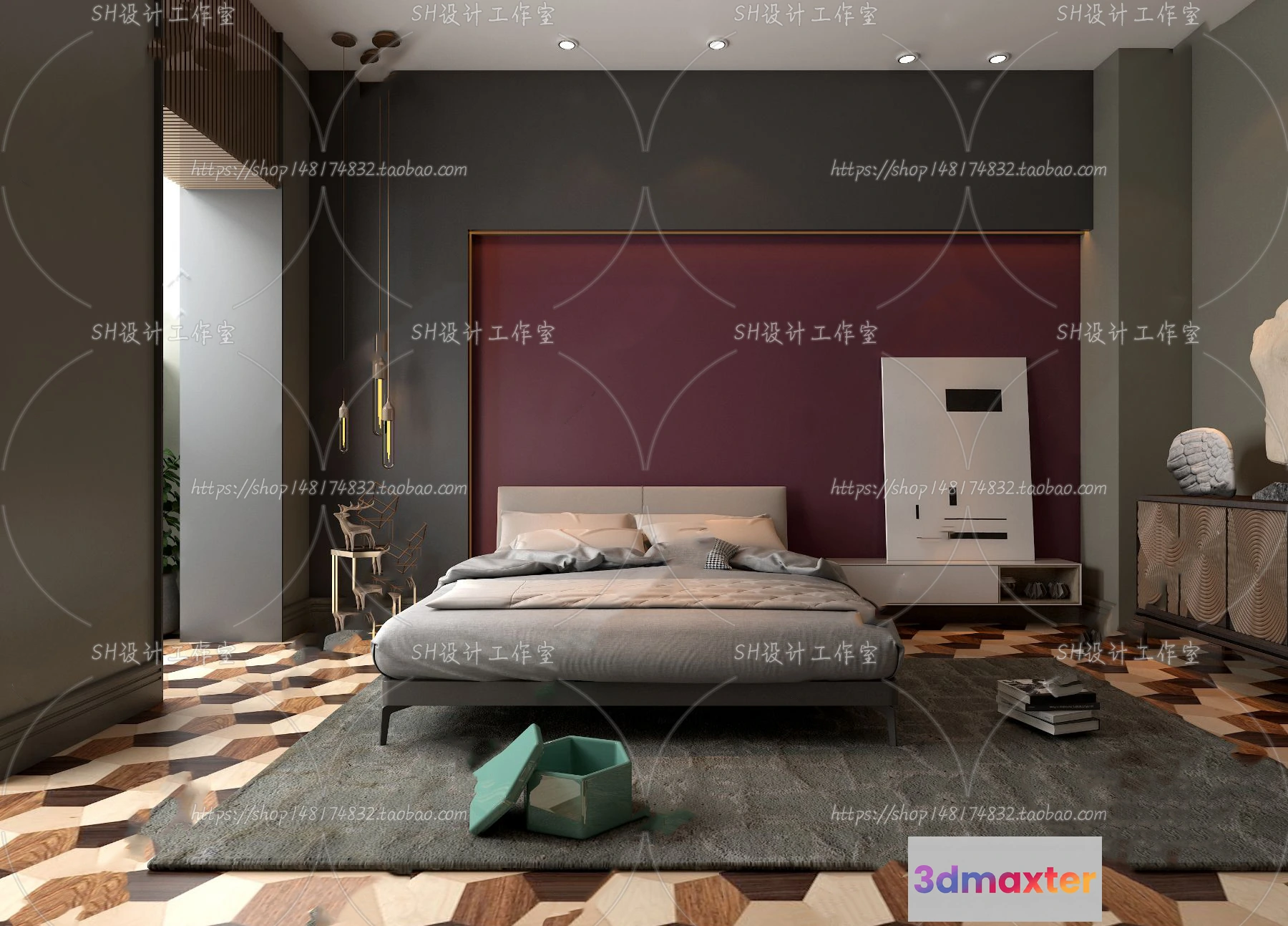 3D Models / 3D Scenes / Interior / Bedroom / BEDROOM 3D SCENES – VRAY RENDER – 198