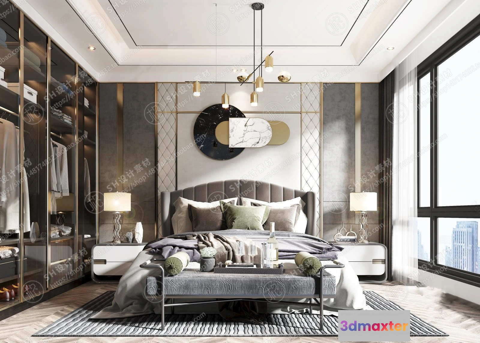 3D Models / 3D Scenes / Interior / Bedroom / BEDROOM 3D SCENES – VRAY RENDER – 286