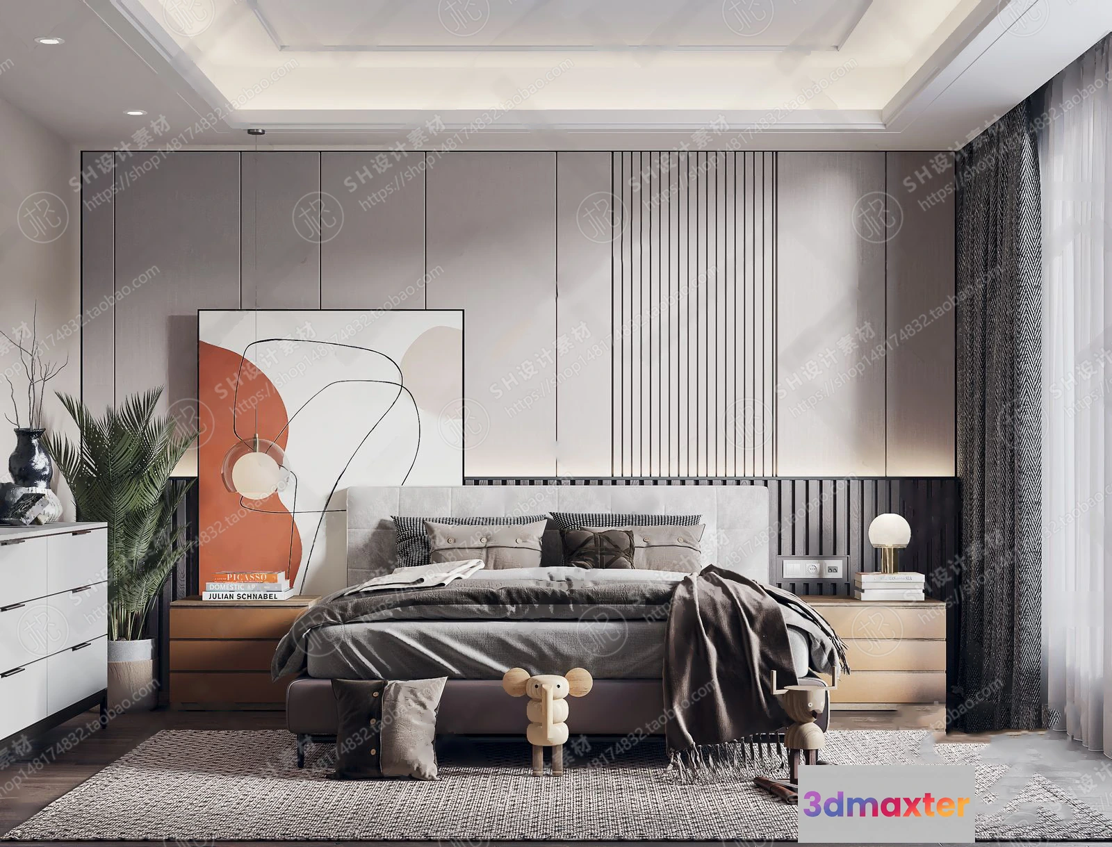3D Models / 3D Scenes / Interior / Bedroom / BEDROOM 3D SCENES – VRAY RENDER – 299