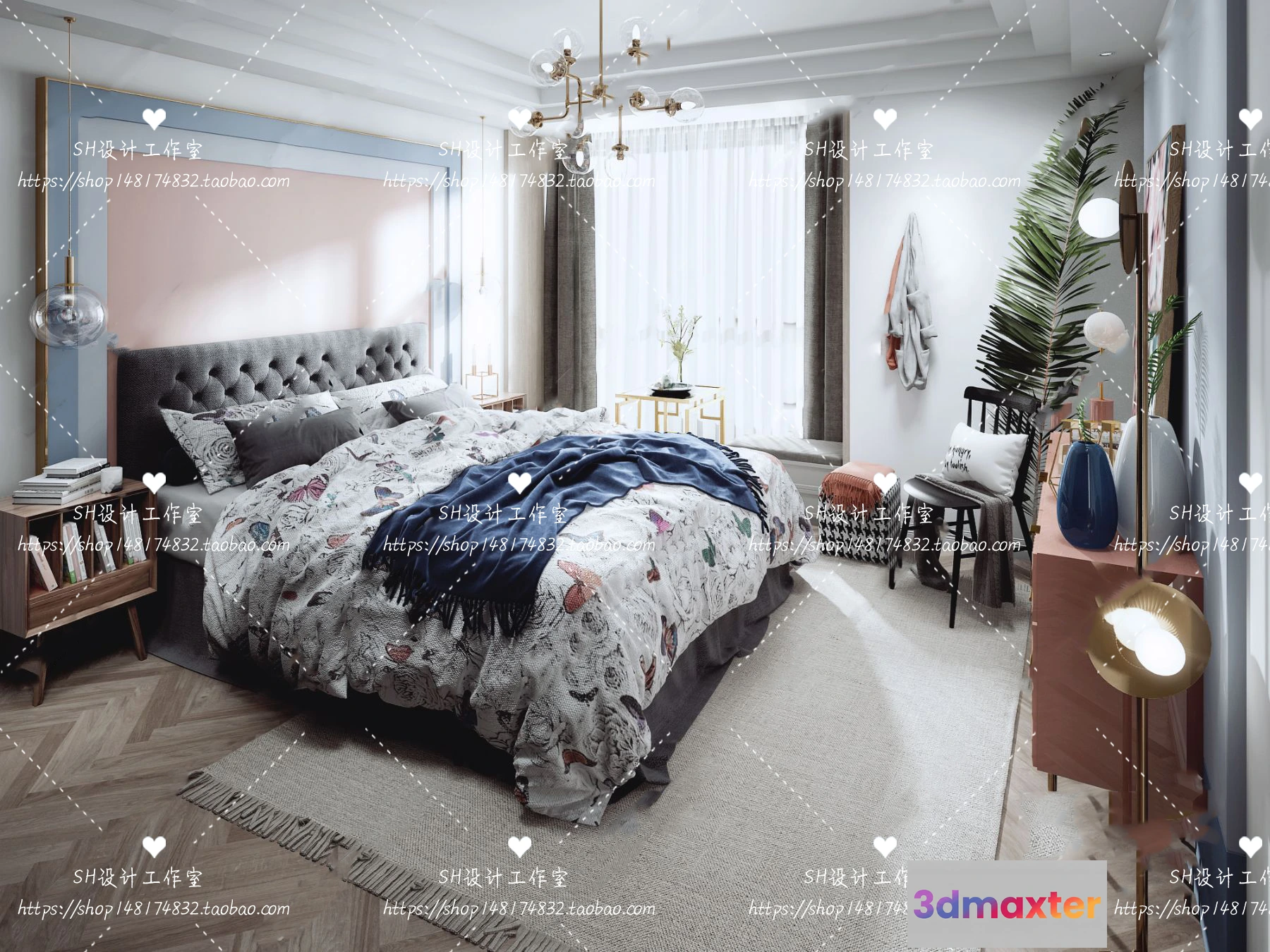 3D Models / 3D Scenes / Interior / Bedroom / BEDROOM 3D SCENES – VRAY RENDER – 374