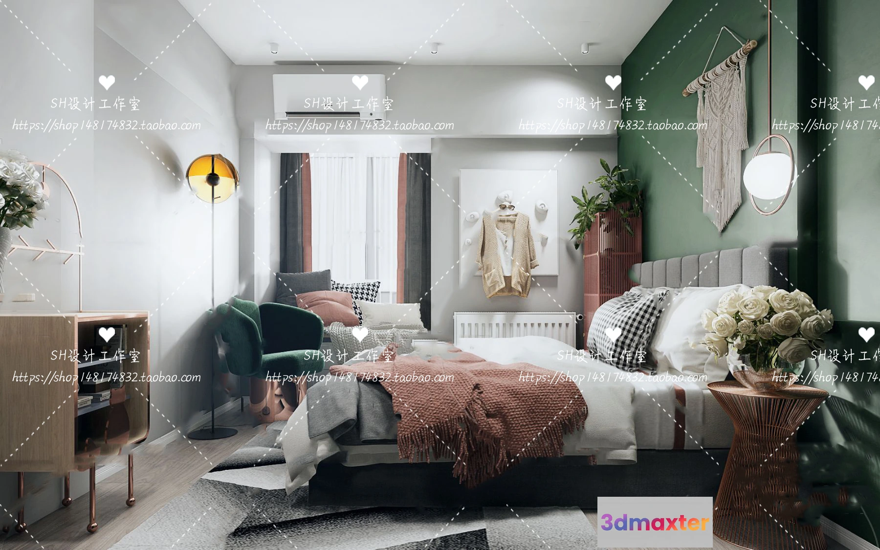 3D Models / 3D Scenes / Interior / Bedroom / BEDROOM 3D SCENES – VRAY RENDER – 380