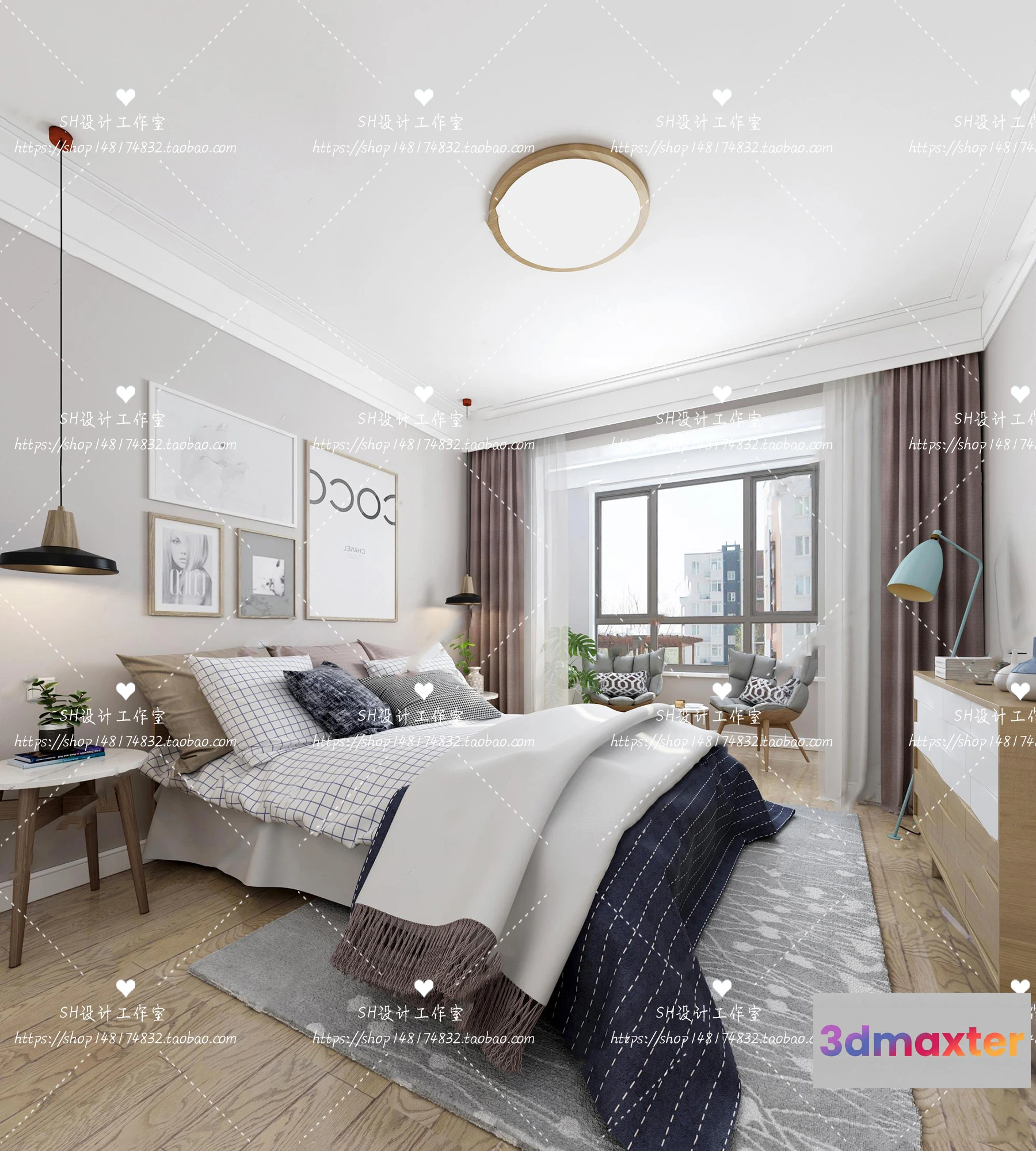 3D Models / 3D Scenes / Interior / Bedroom / BEDROOM 3D SCENES – VRAY RENDER – 412