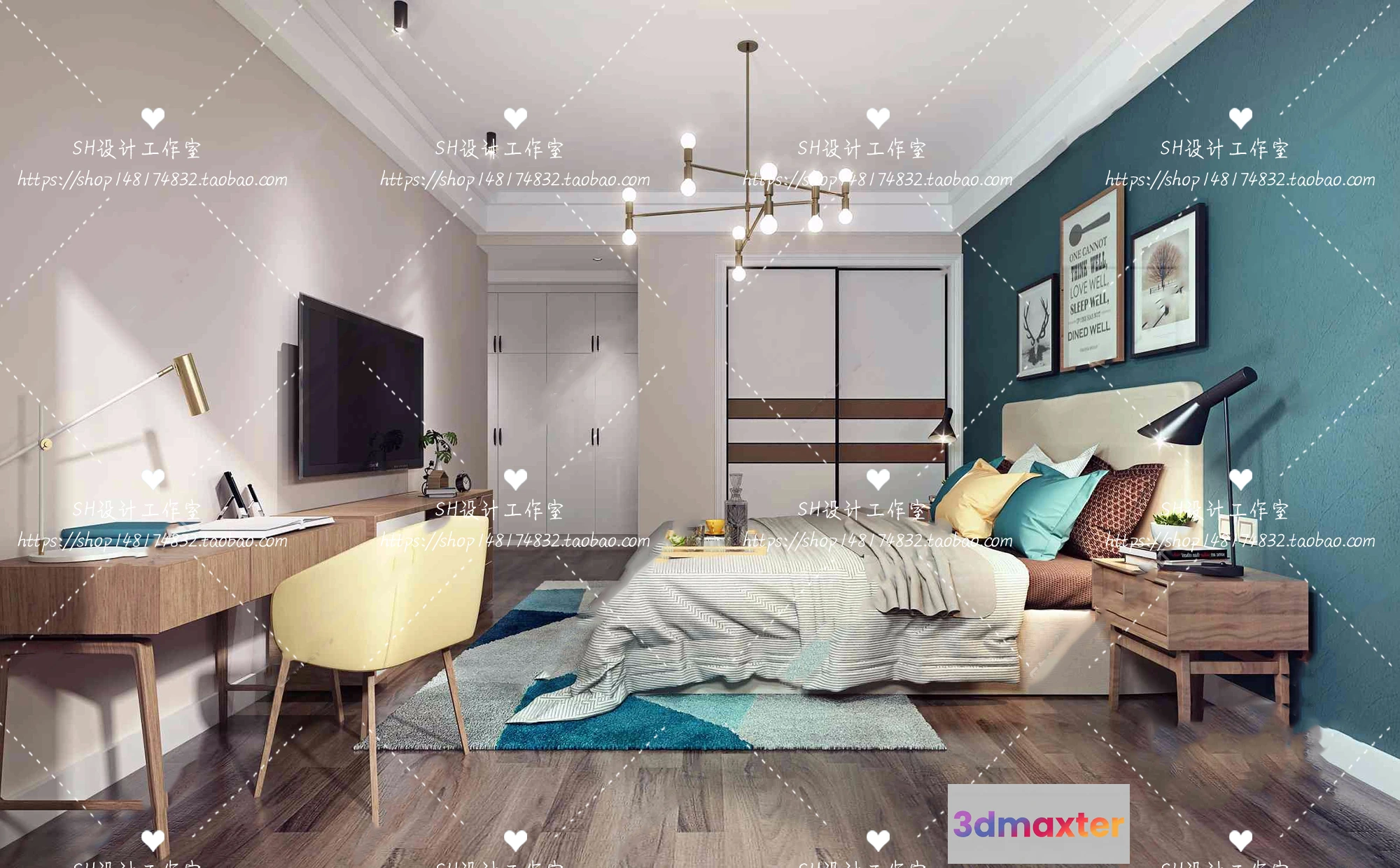 3D Models / 3D Scenes / Interior / Bedroom / BEDROOM 3D SCENES – VRAY RENDER – 467