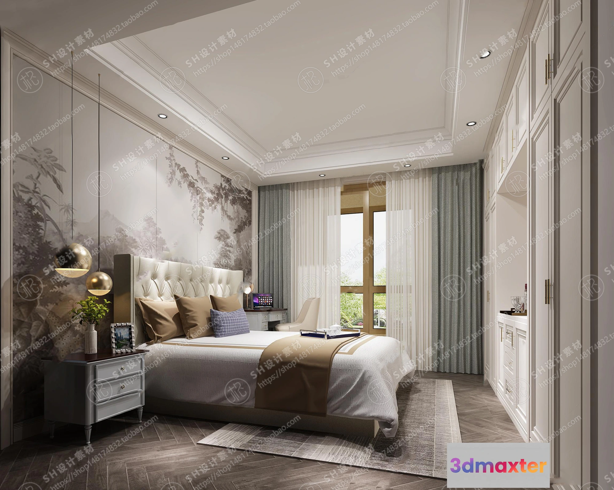 3D Models / 3D Scenes / Interior / Bedroom / BEDROOM 3D SCENES – VRAY RENDER – 484