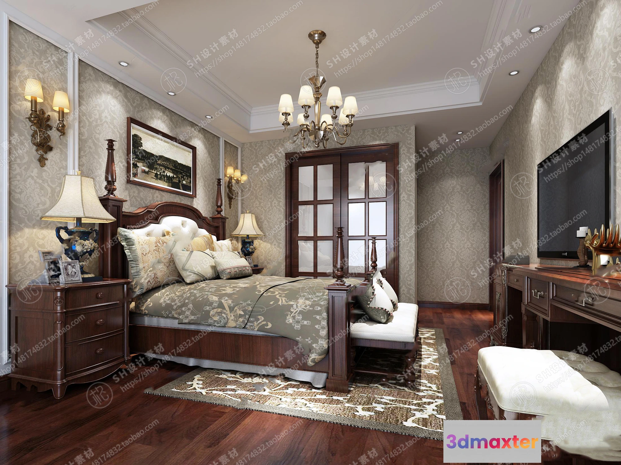 3D Models / 3D Scenes / Interior / Bedroom / BEDROOM 3D SCENES – VRAY RENDER – 491