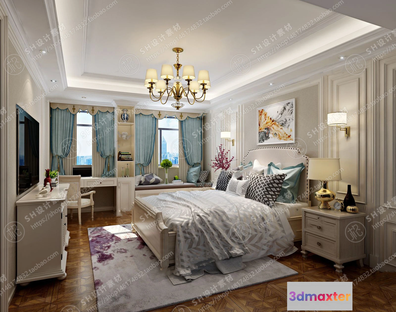3D Models / 3D Scenes / Interior / Bedroom / BEDROOM 3D SCENES – VRAY RENDER – 538