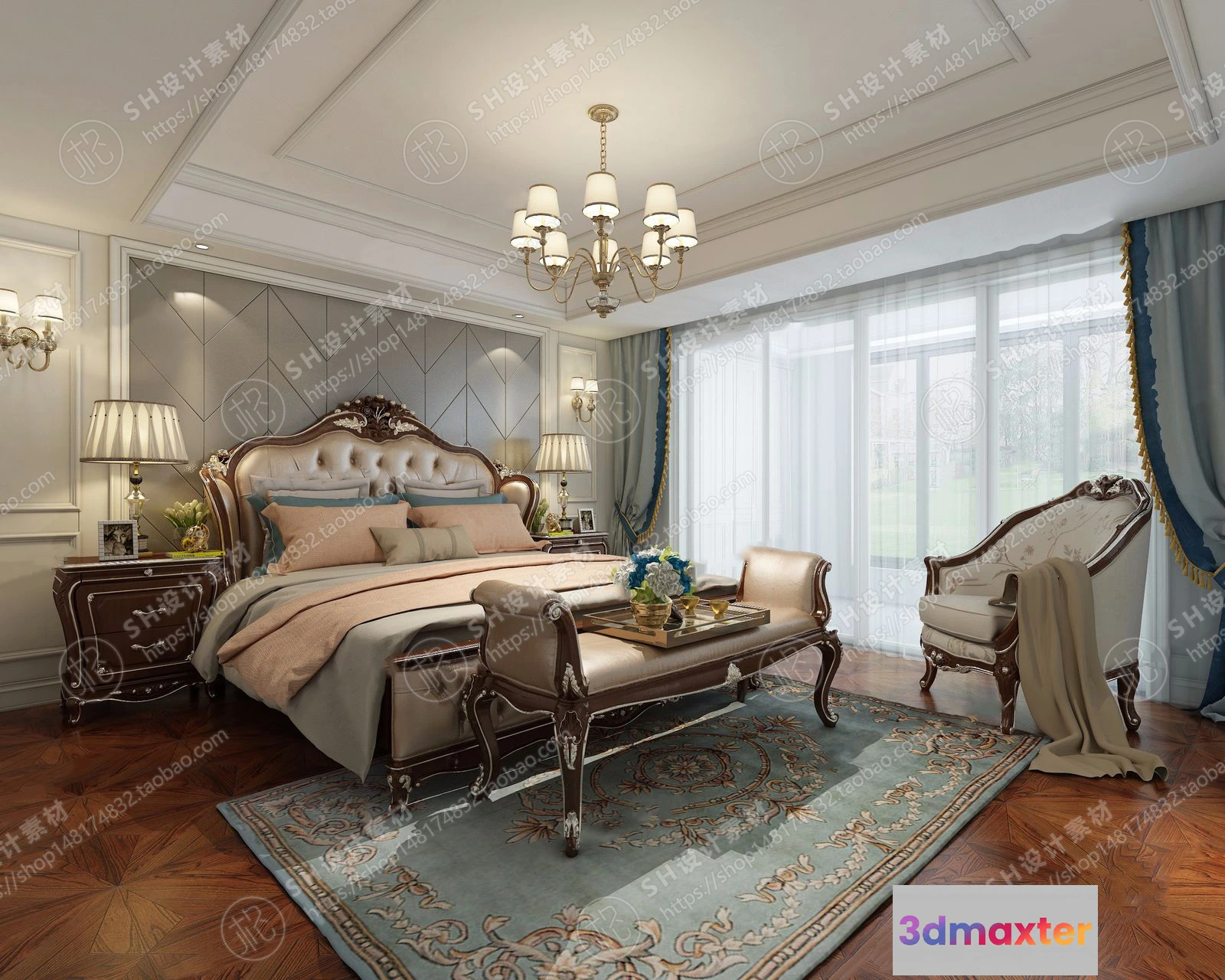 3D Models / 3D Scenes / Interior / Bedroom / BEDROOM 3D SCENES – VRAY RENDER – 551