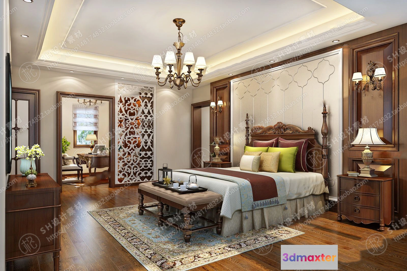 3D Models / 3D Scenes / Interior / Bedroom / BEDROOM 3D SCENES – VRAY RENDER – 556