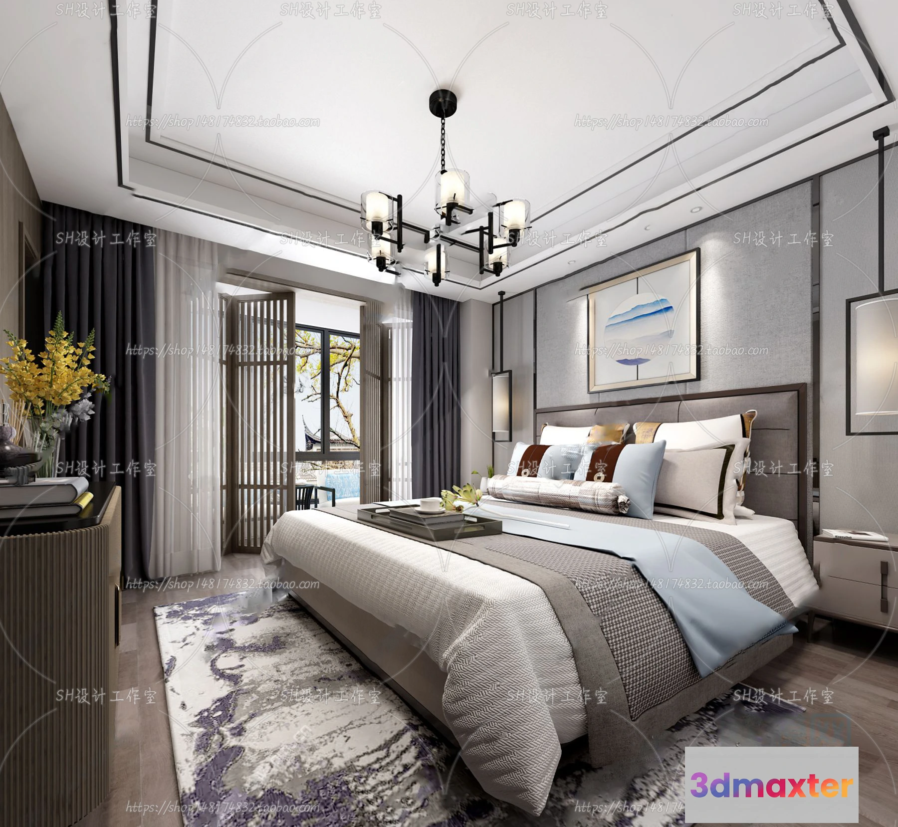 3D Models / 3D Scenes / Interior / Bedroom / BEDROOM 3D SCENES – VRAY RENDER – 586