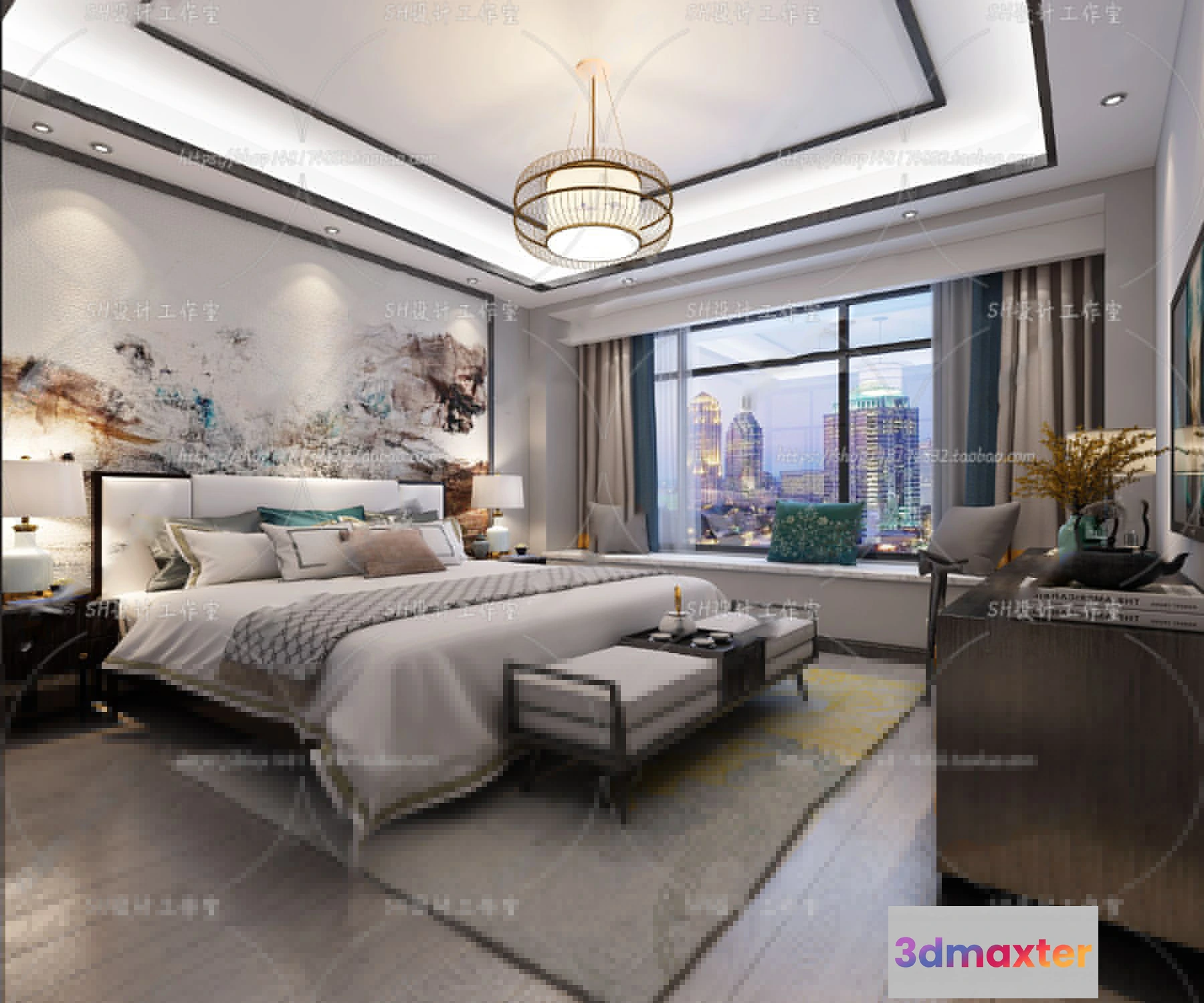 3D Models / 3D Scenes / Interior / Bedroom / BEDROOM 3D SCENES – VRAY RENDER – 604