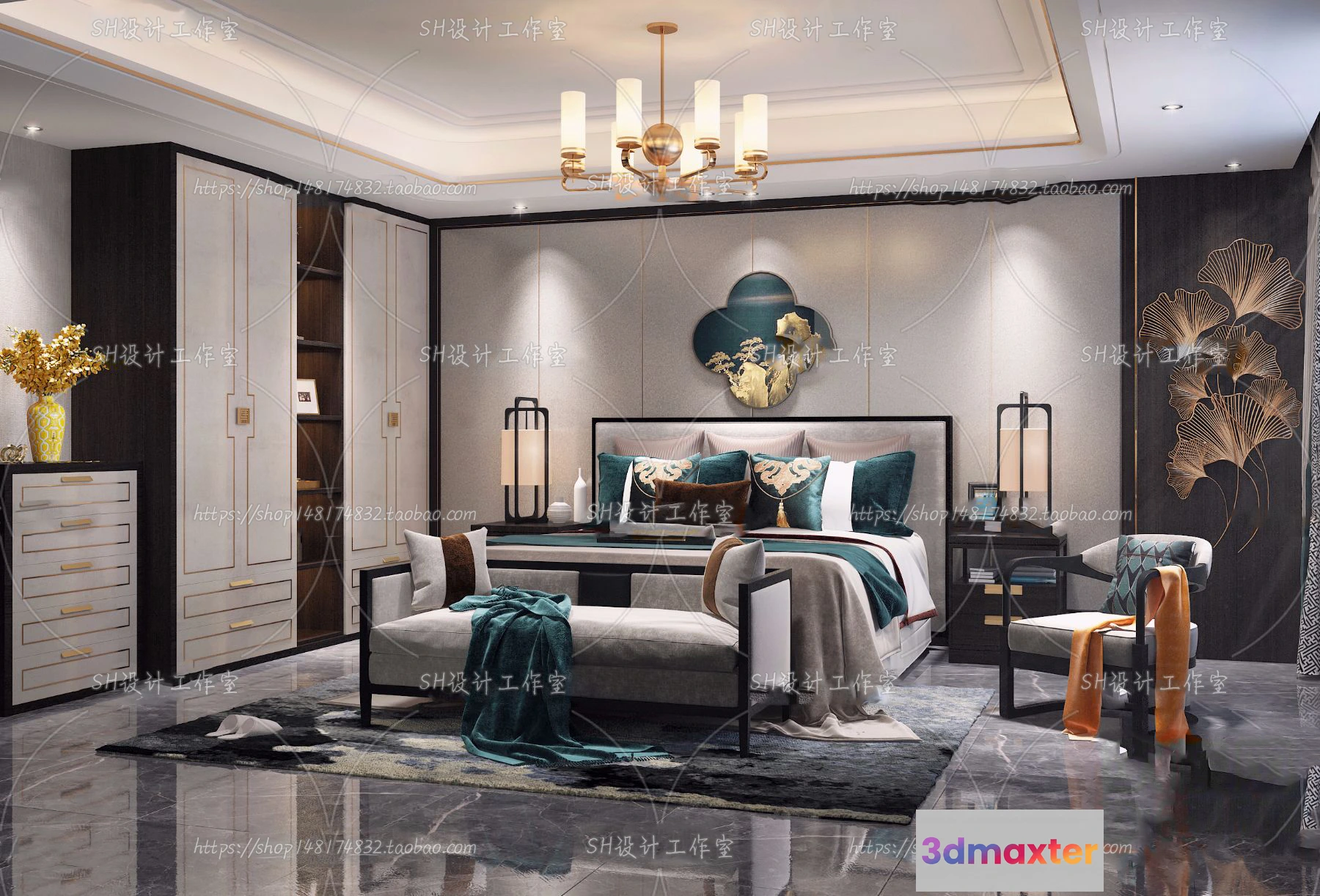 3D Models / 3D Scenes / Interior / Bedroom / BEDROOM 3D SCENES – VRAY RENDER – 617