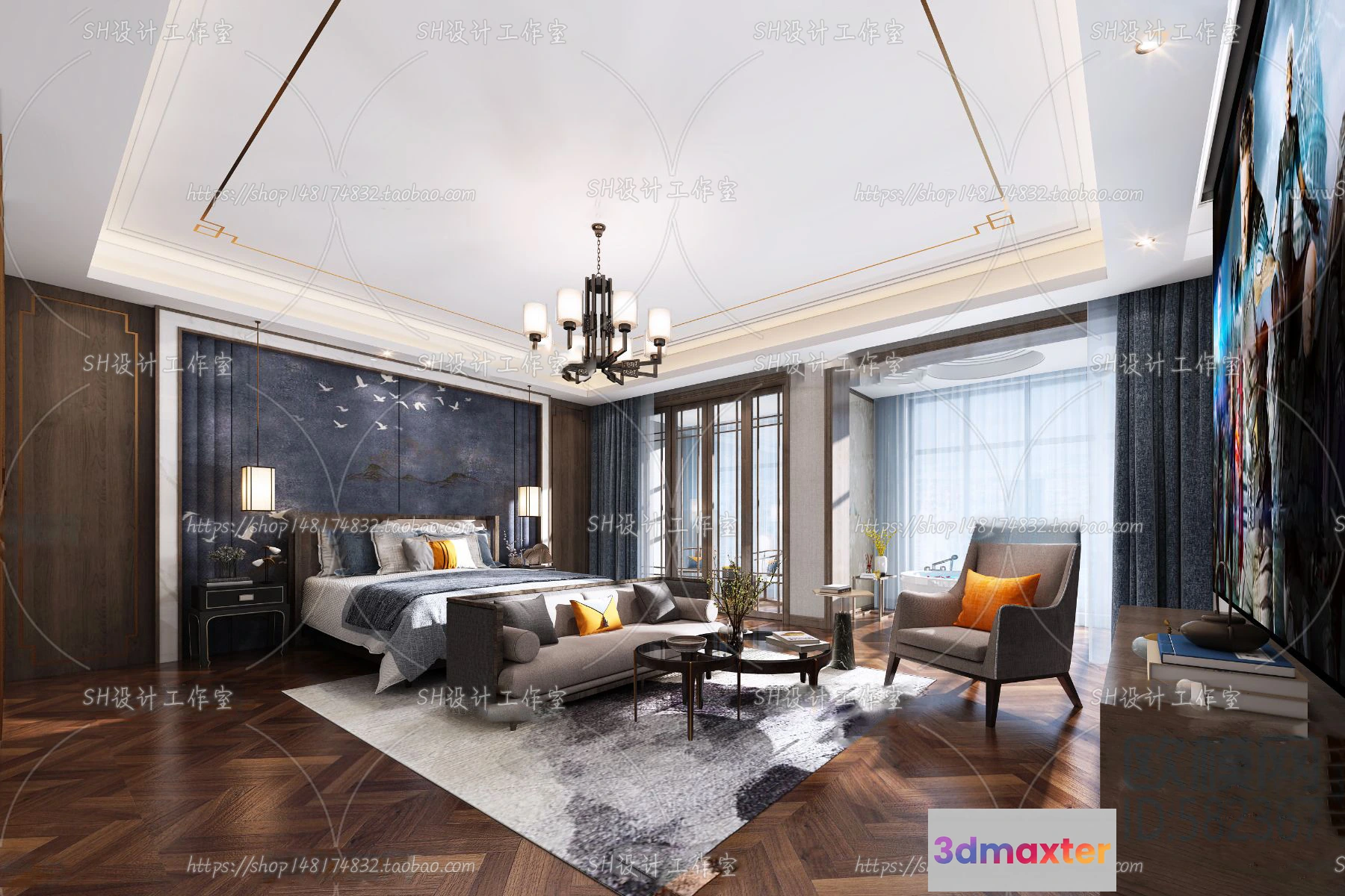 3D Models / 3D Scenes / Interior / Bedroom / BEDROOM 3D SCENES – VRAY RENDER – 627