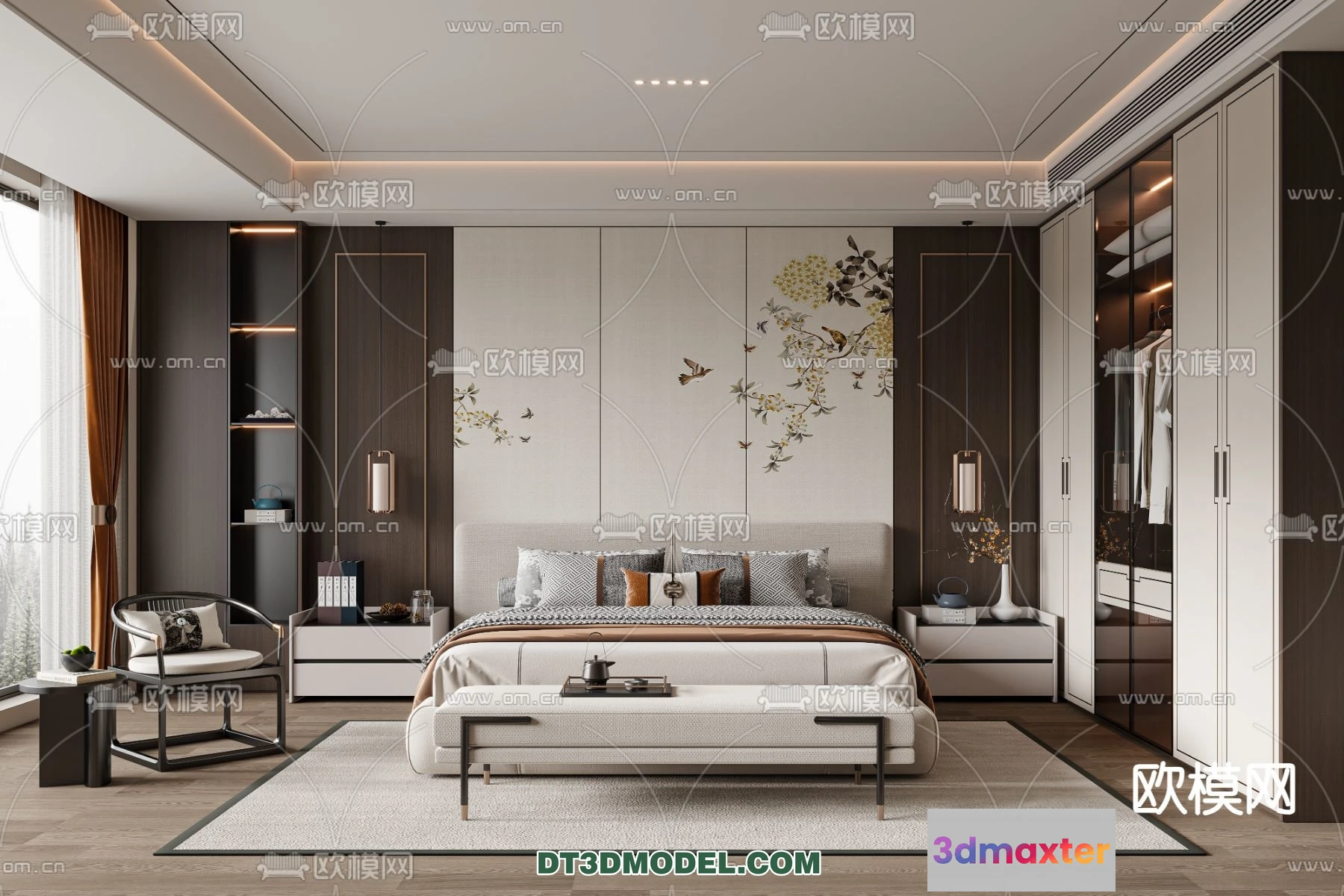3D Models / 3D Scenes / Interior / Bedroom / Bedroom – Chinese Style – 3D Model For Interior Design – 538 3D Max