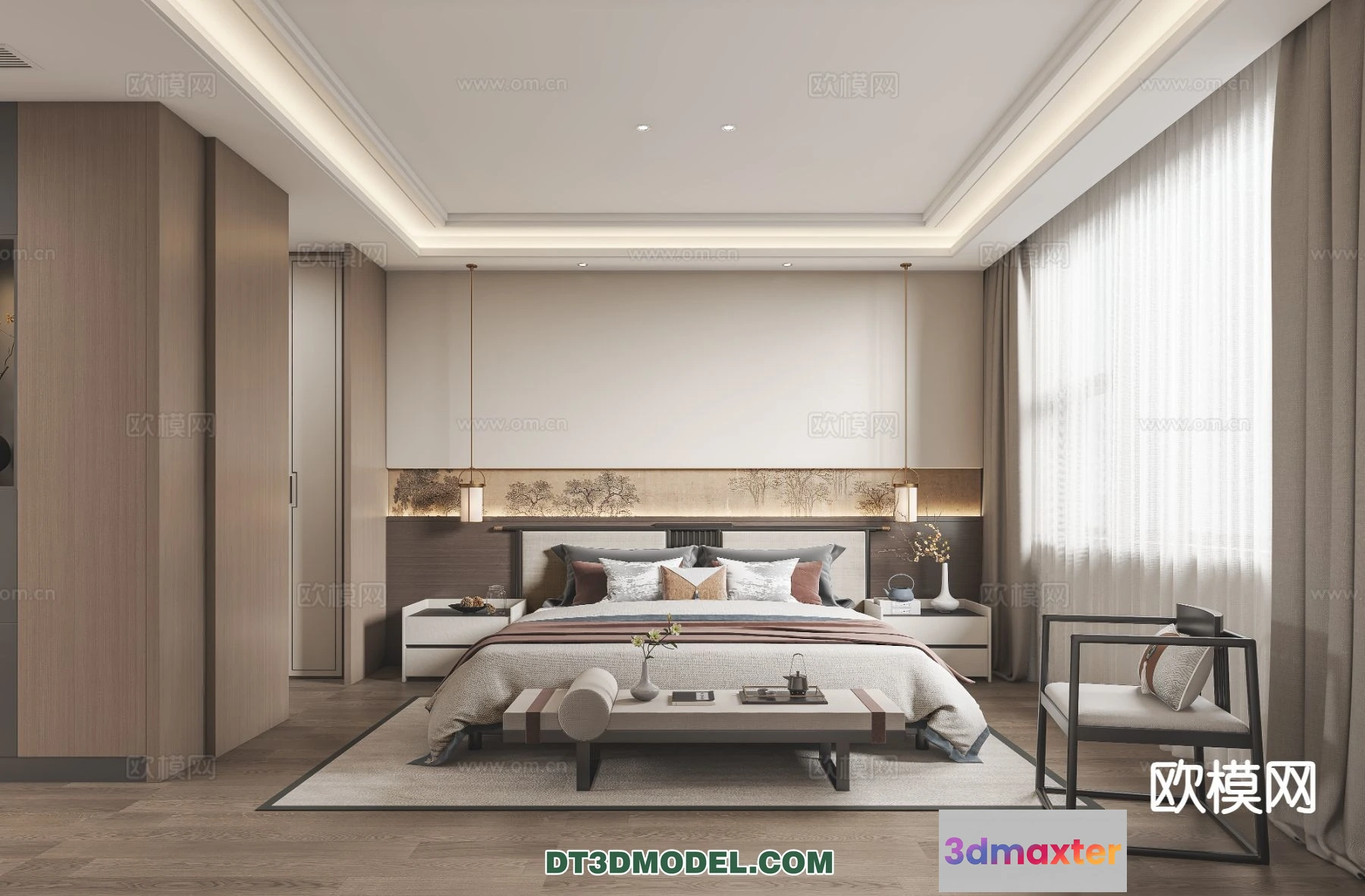 3D Models / 3D Scenes / Interior / Bedroom / Bedroom – Chinese Style – 3D Model For Interior Design – 574 3D Max