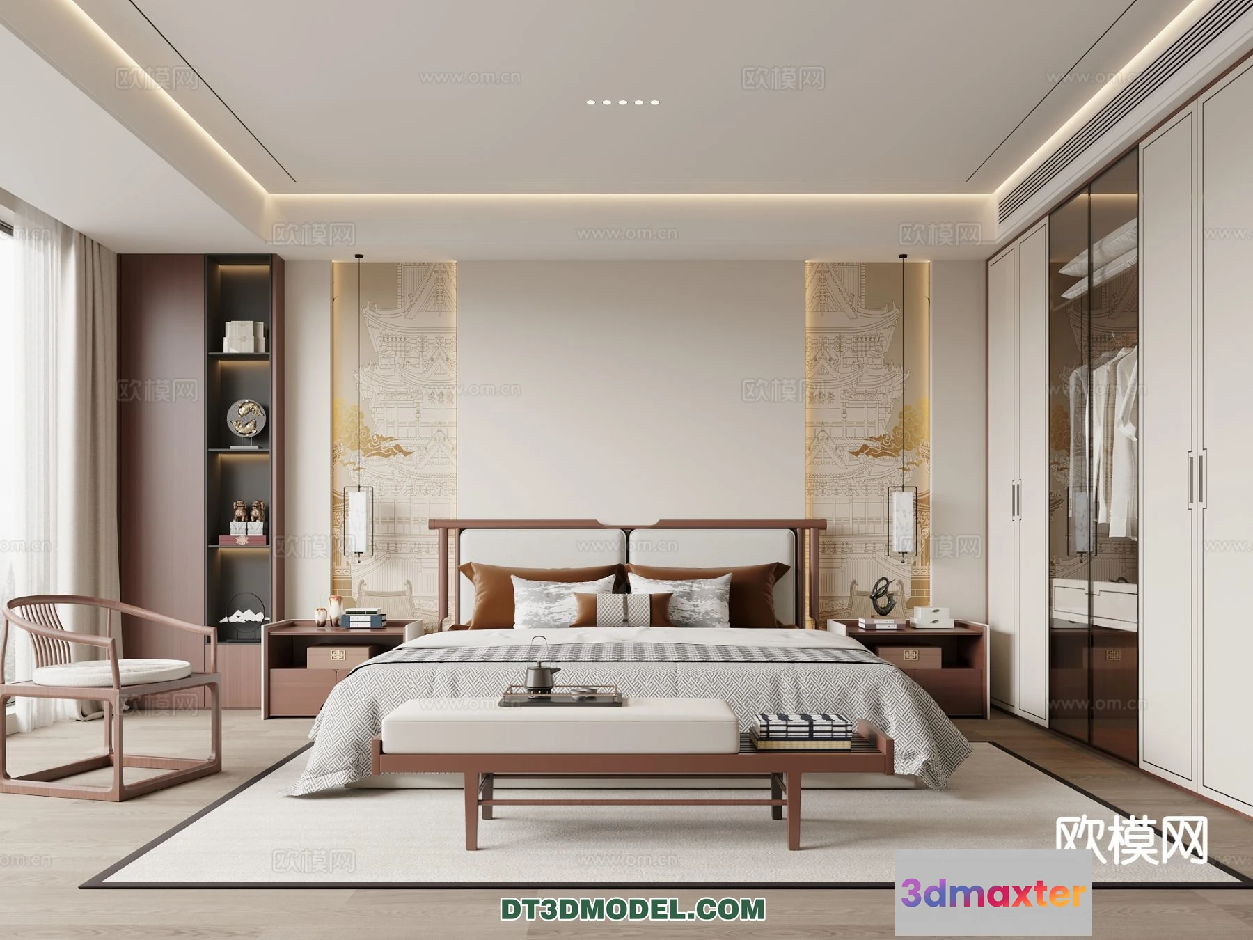 3D Models / 3D Scenes / Interior / Bedroom / Bedroom – Chinese Style – 3D Model For Interior Design – 578 3D Max