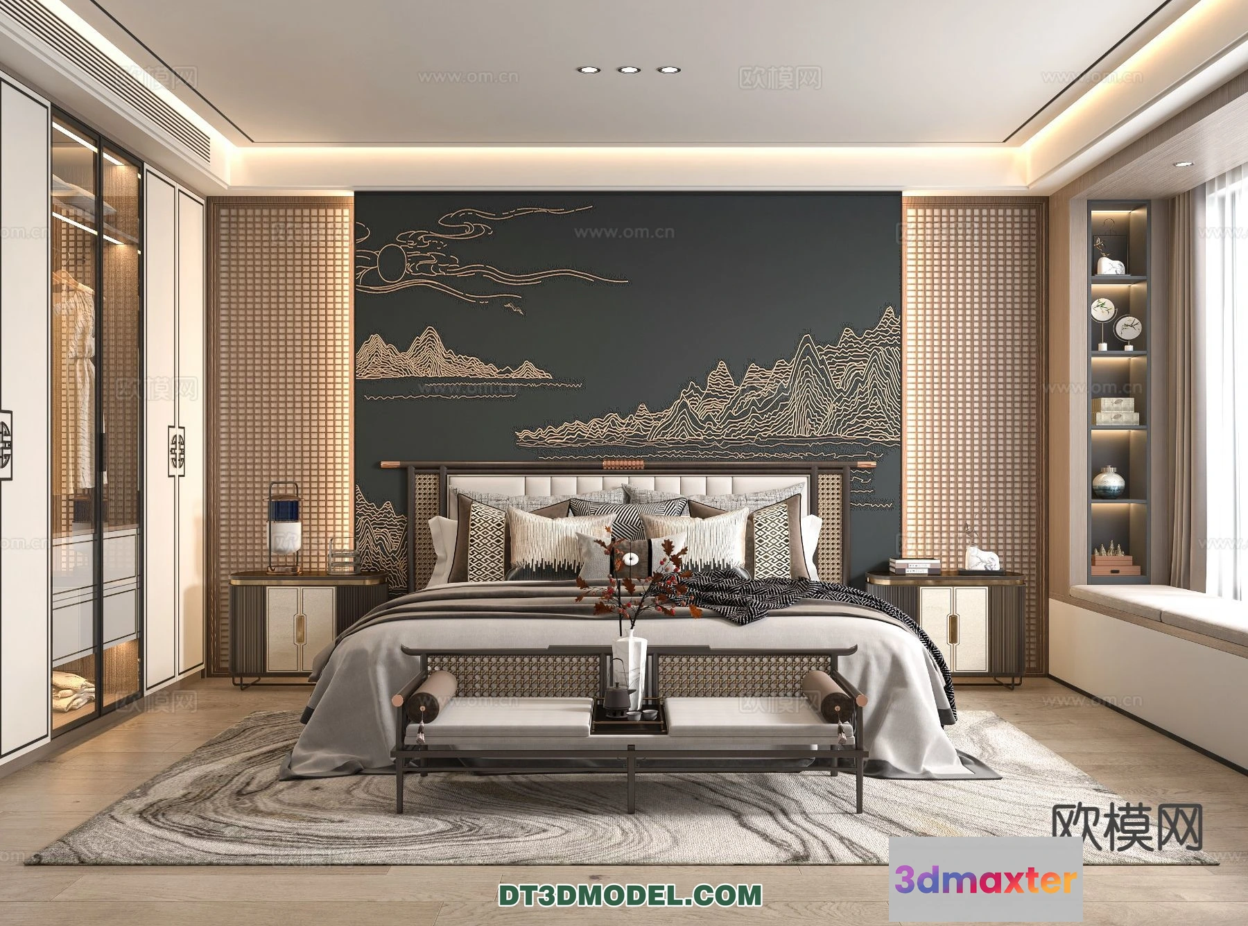 3D Models / 3D Scenes / Interior / Bedroom / Bedroom – Chinese Style – 3D Model For Interior Design – 589 3D Max