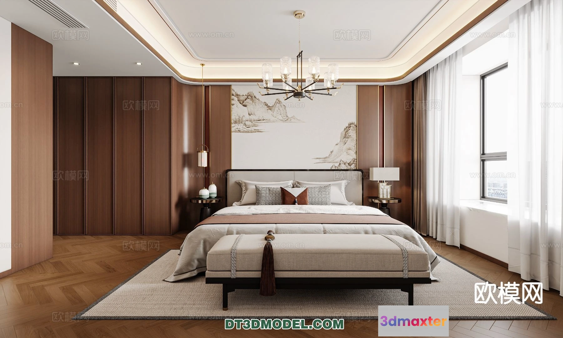 3D Models / 3D Scenes / Interior / Bedroom / Bedroom – Chinese Style – 3D Model For Interior Design – 594 3D Max