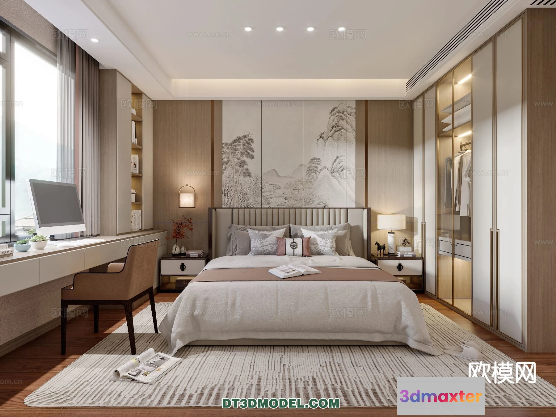 3D Models / 3D Scenes / Interior / Bedroom / Bedroom – Chinese Style – 3D Model For Interior Design – 599 3D Max