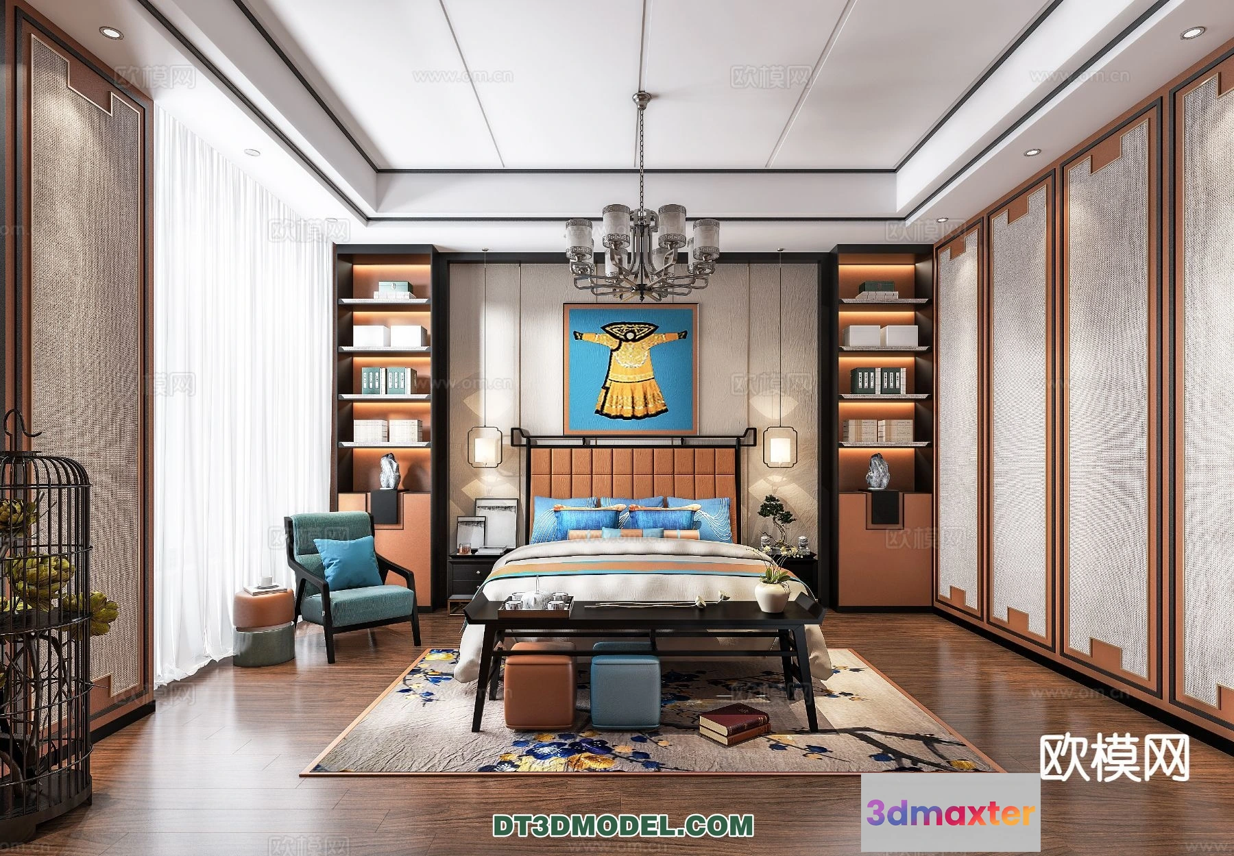 3D Models / 3D Scenes / Interior / Bedroom / Bedroom – Chinese Style – 3D Model For Interior Design – 603 3D Max