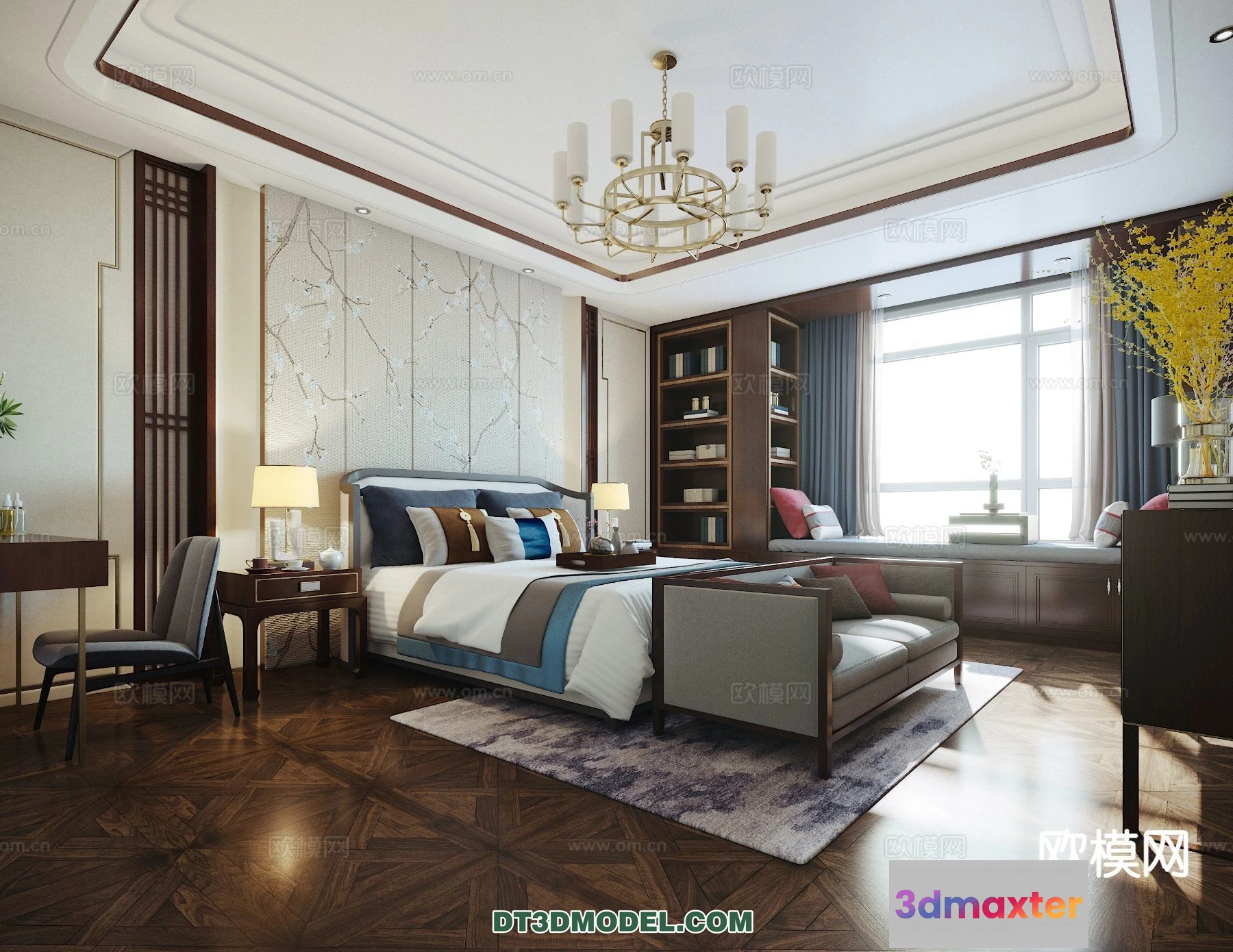 3D Models / 3D Scenes / Interior / Bedroom / Bedroom – Chinese Style – 3D Model For Interior Design – 612 3D Max