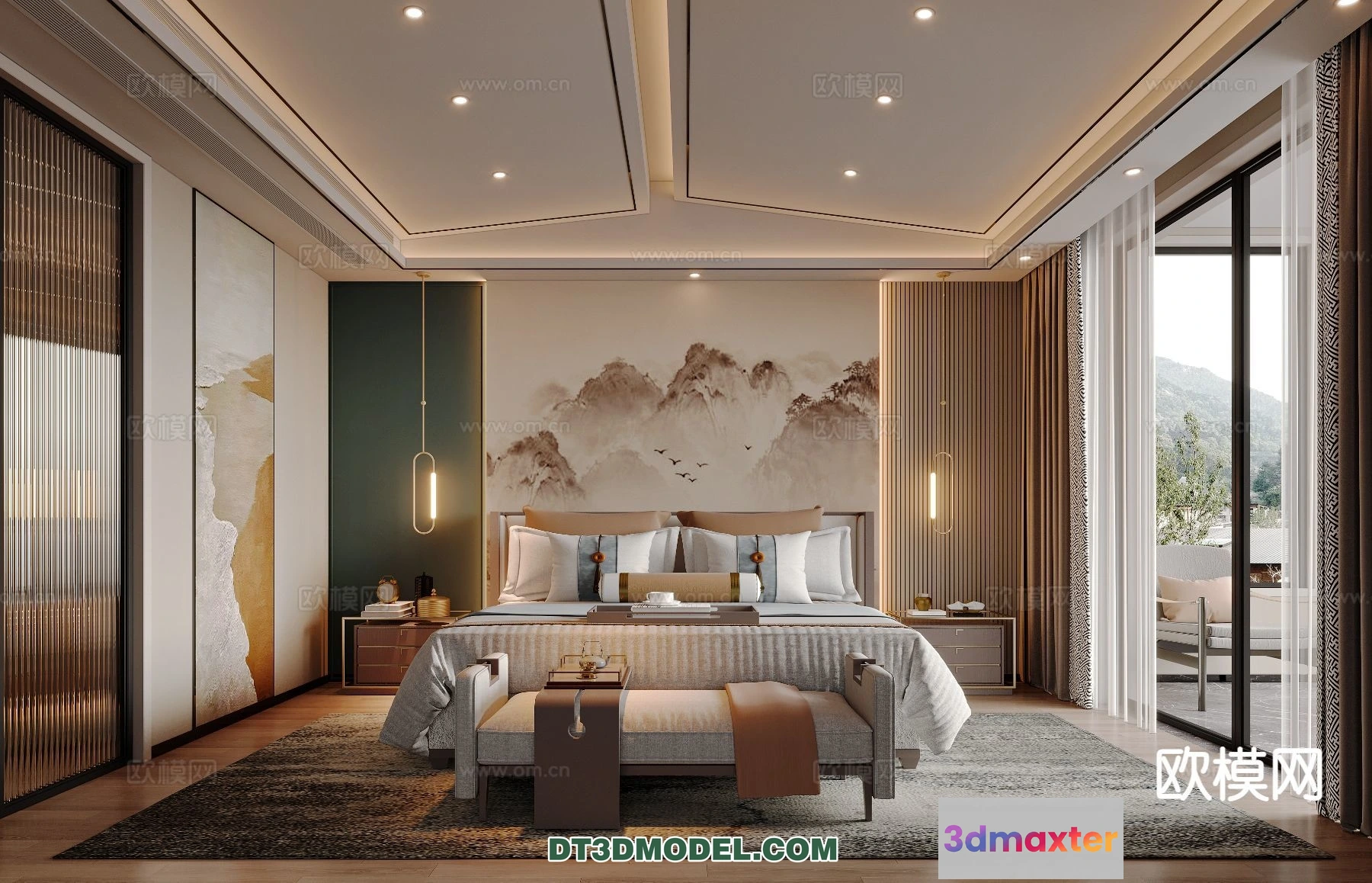 3D Models / 3D Scenes / Interior / Bedroom / Bedroom – Chinese Style – 3D Model For Interior Design – 617 3D Max