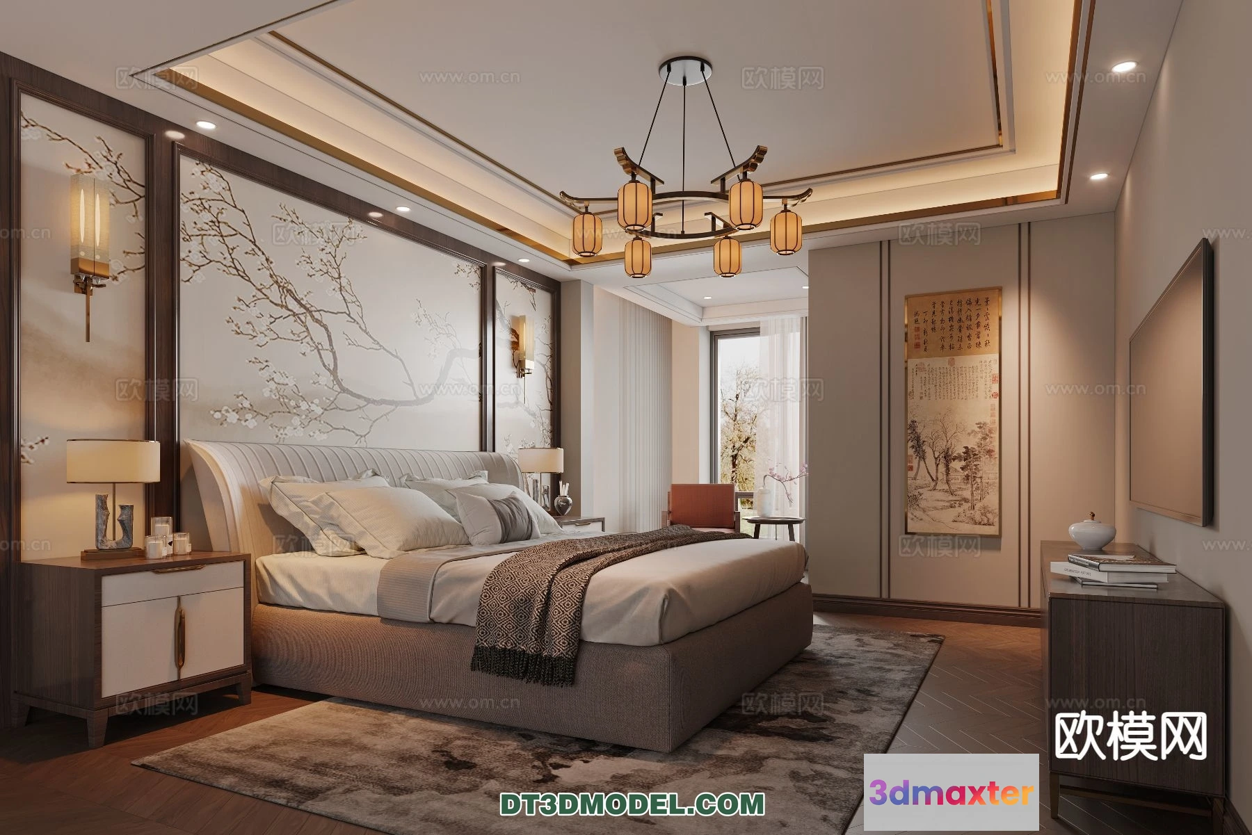 3D Models / 3D Scenes / Interior / Bedroom / Bedroom – Chinese Style – 3D Model For Interior Design – 626 3D Max