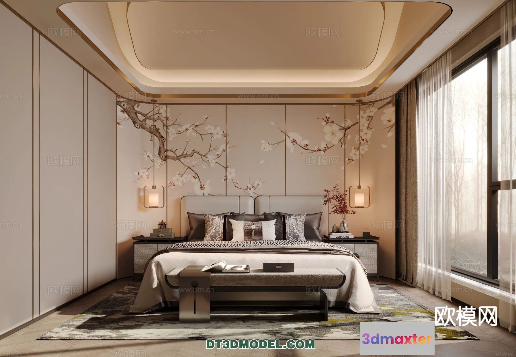 3D Models / 3D Scenes / Interior / Bedroom / Bedroom – Chinese Style – 3D Model For Interior Design – 641 3D Max