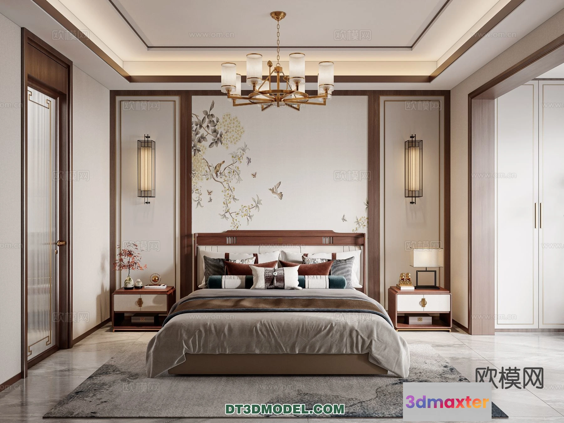 3D Models / 3D Scenes / Interior / Bedroom / Bedroom – Chinese Style – 3D Model For Interior Design – 643 3D Max