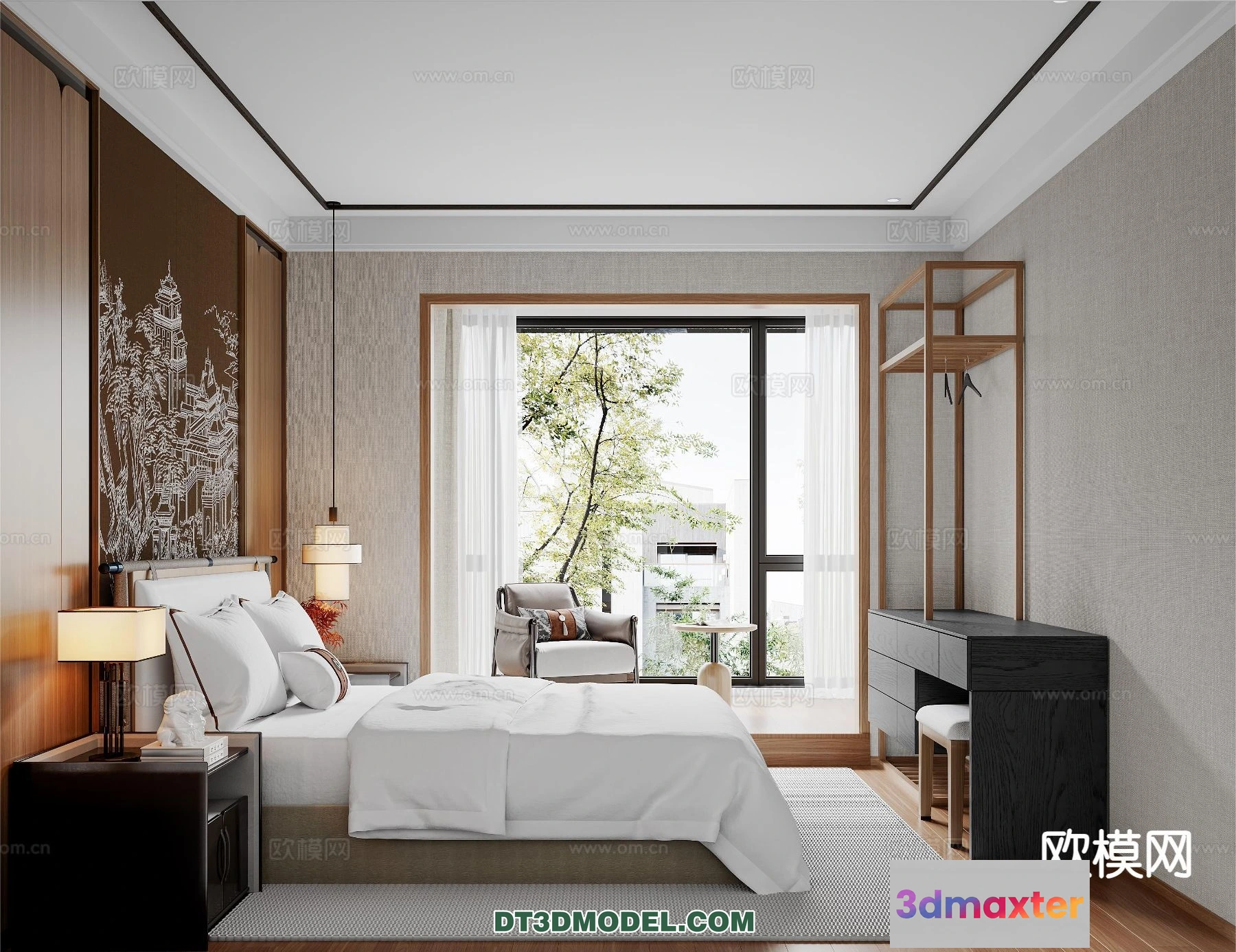 3D Models / 3D Scenes / Interior / Bedroom / Bedroom – Chinese Style – 3D Model For Interior Design – 663 3D Max