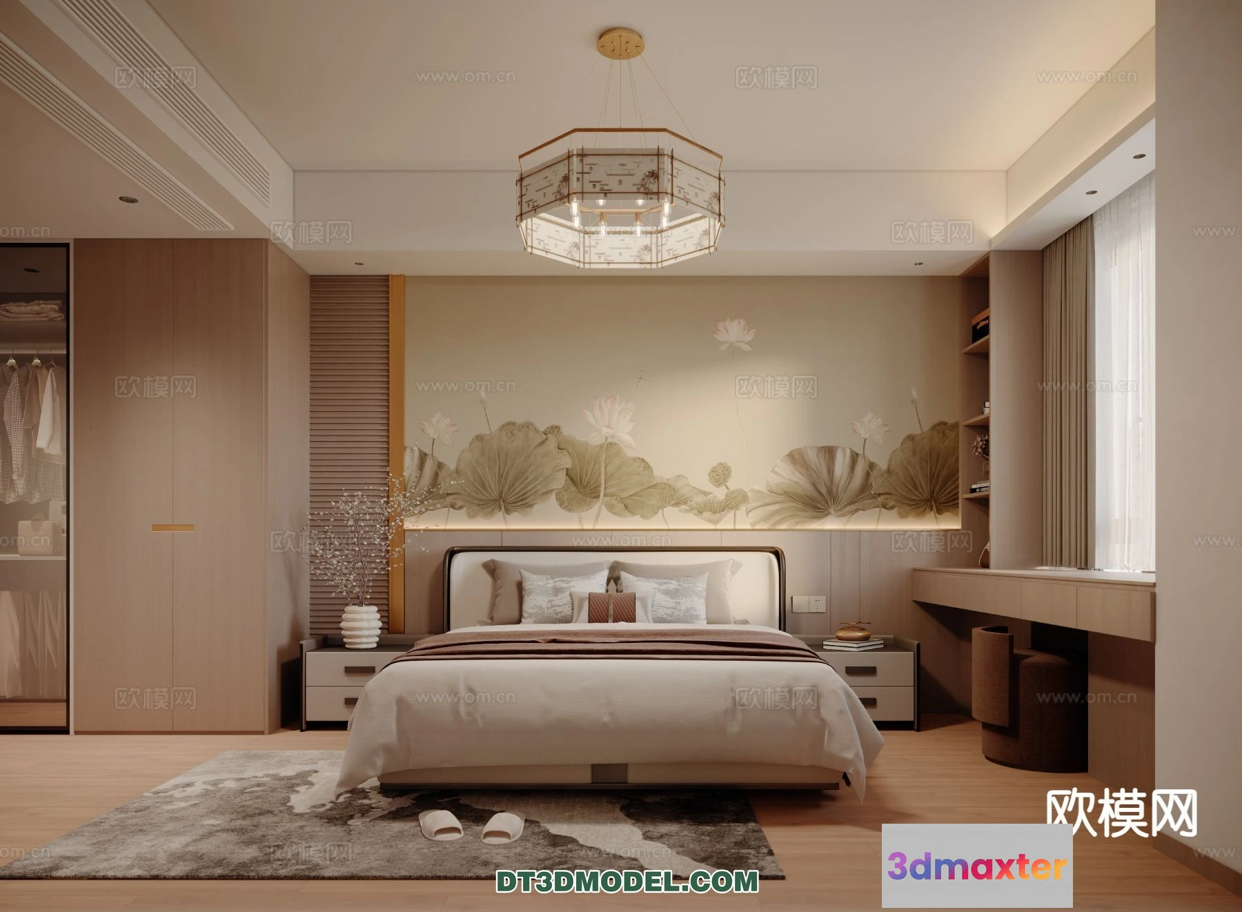 3D Models / 3D Scenes / Interior / Bedroom / Bedroom – Chinese Style – 3D Model For Interior Design – 665 3D Max