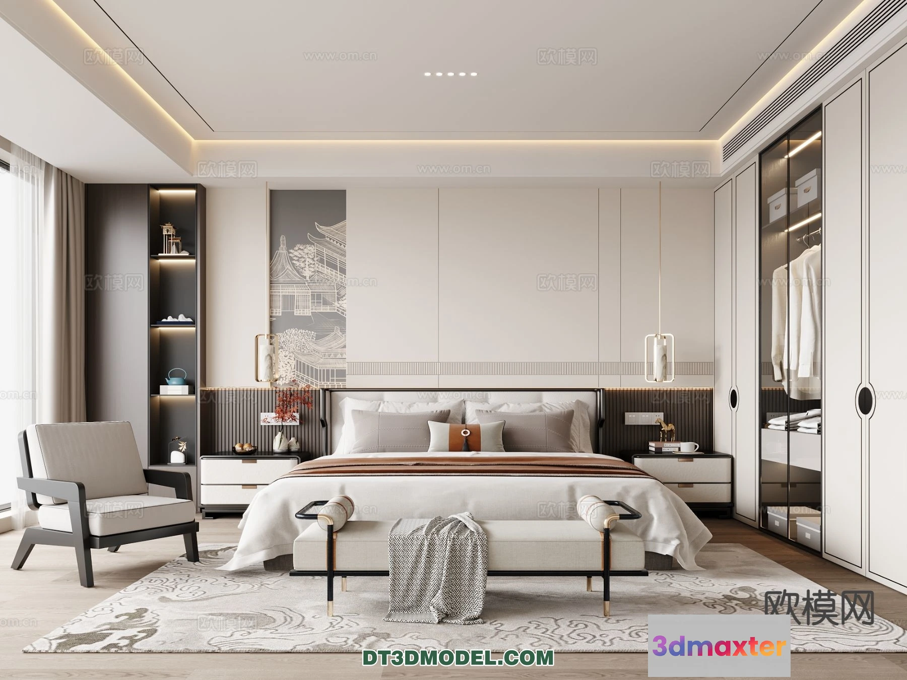 3D Models / 3D Scenes / Interior / Bedroom / Bedroom – Chinese Style – 3D Model For Interior Design – 668 3D Max