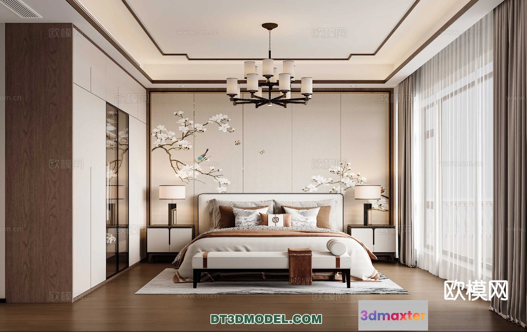 3D Models / 3D Scenes / Interior / Bedroom / Bedroom – Chinese Style – 3D Model For Interior Design – 675 3D Max